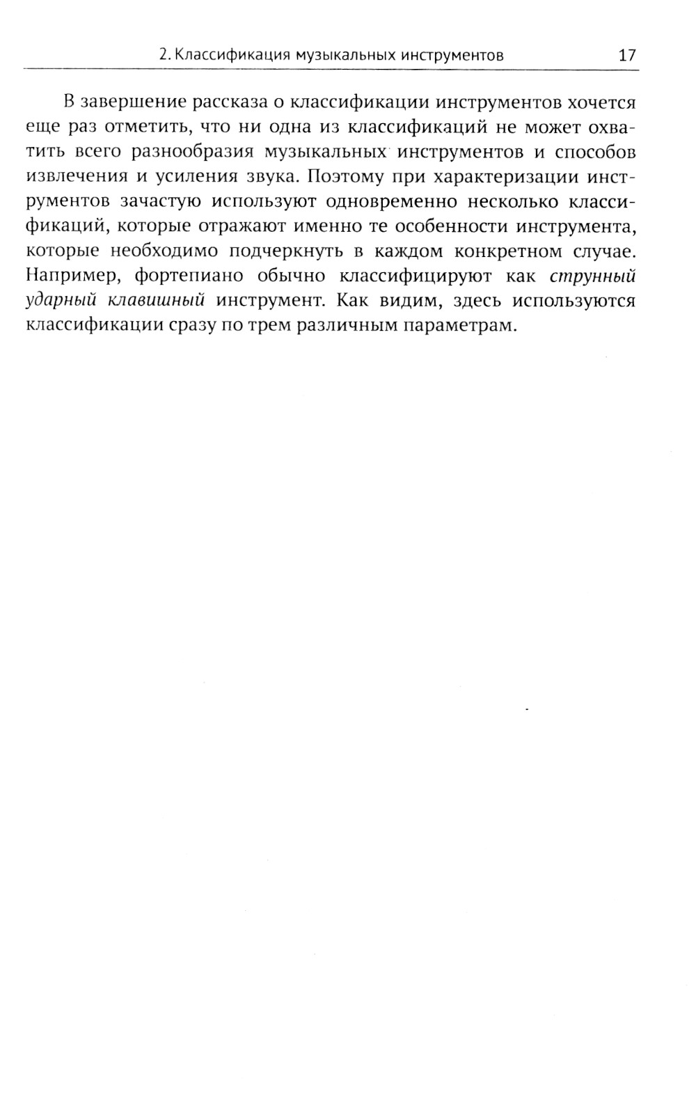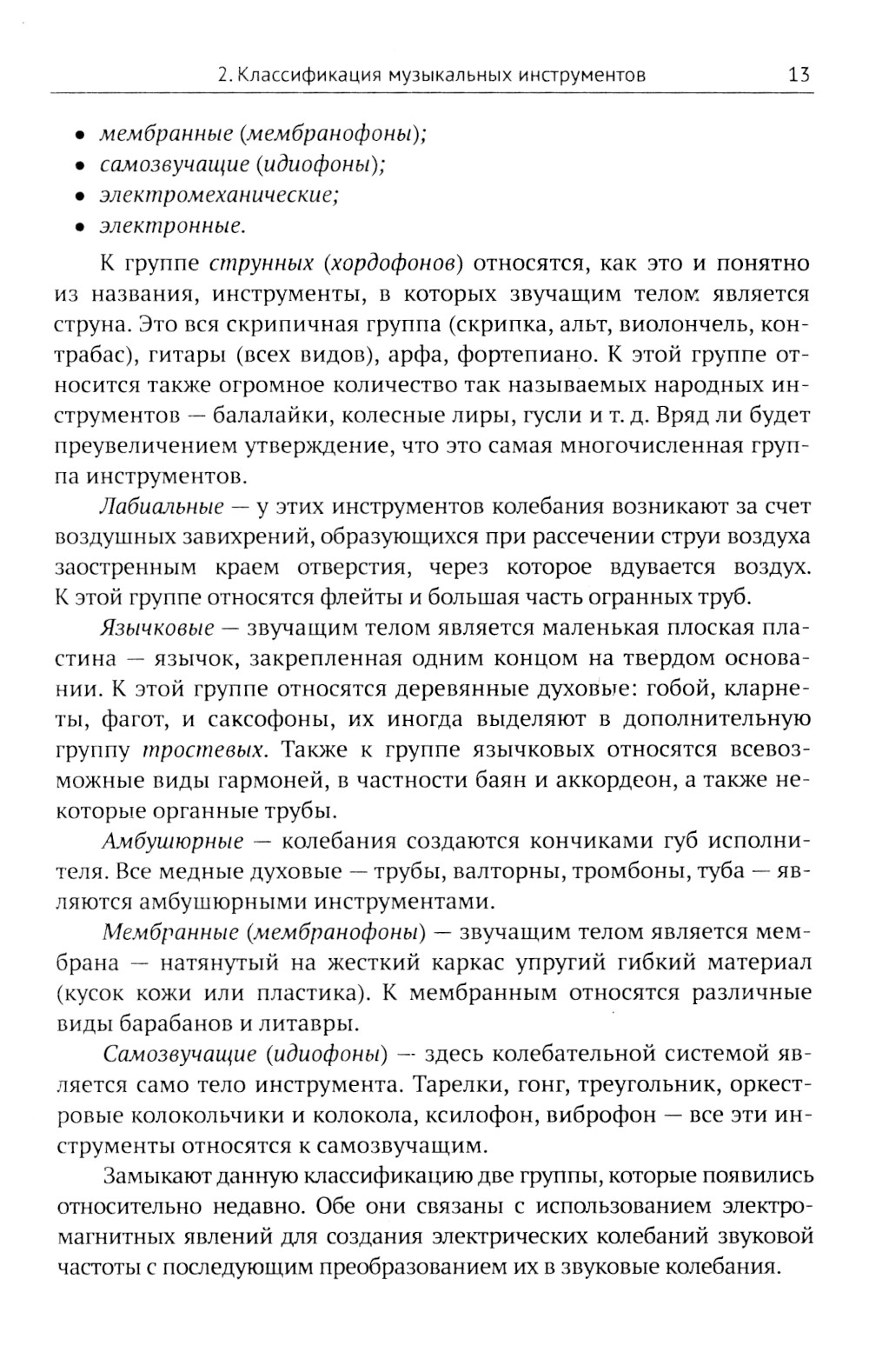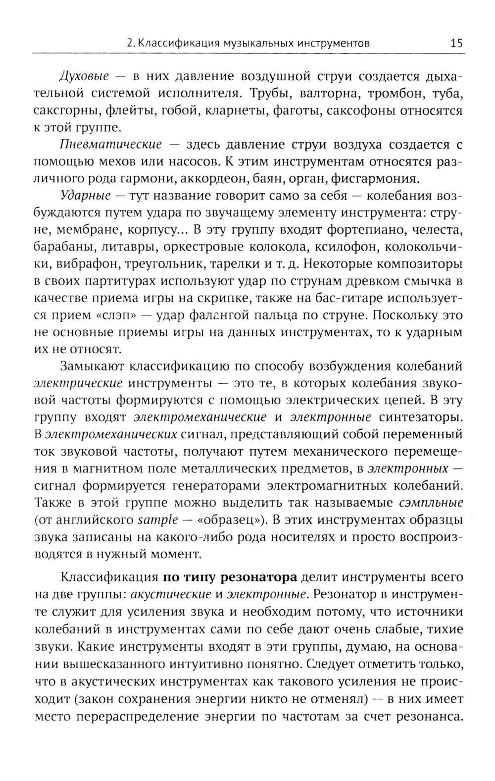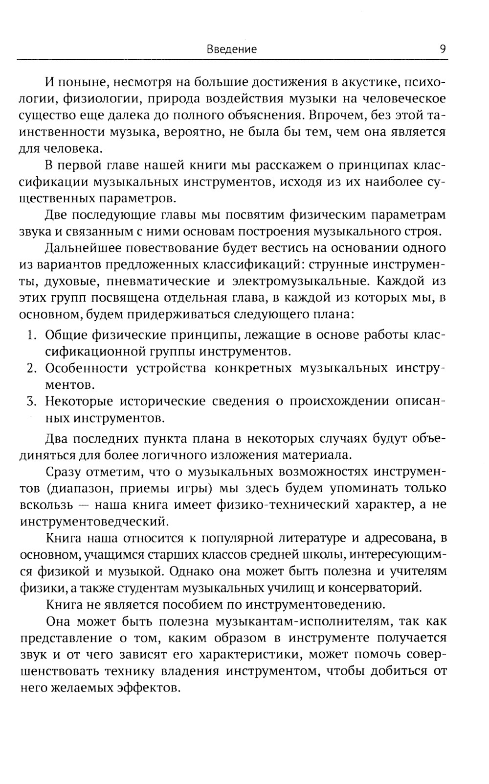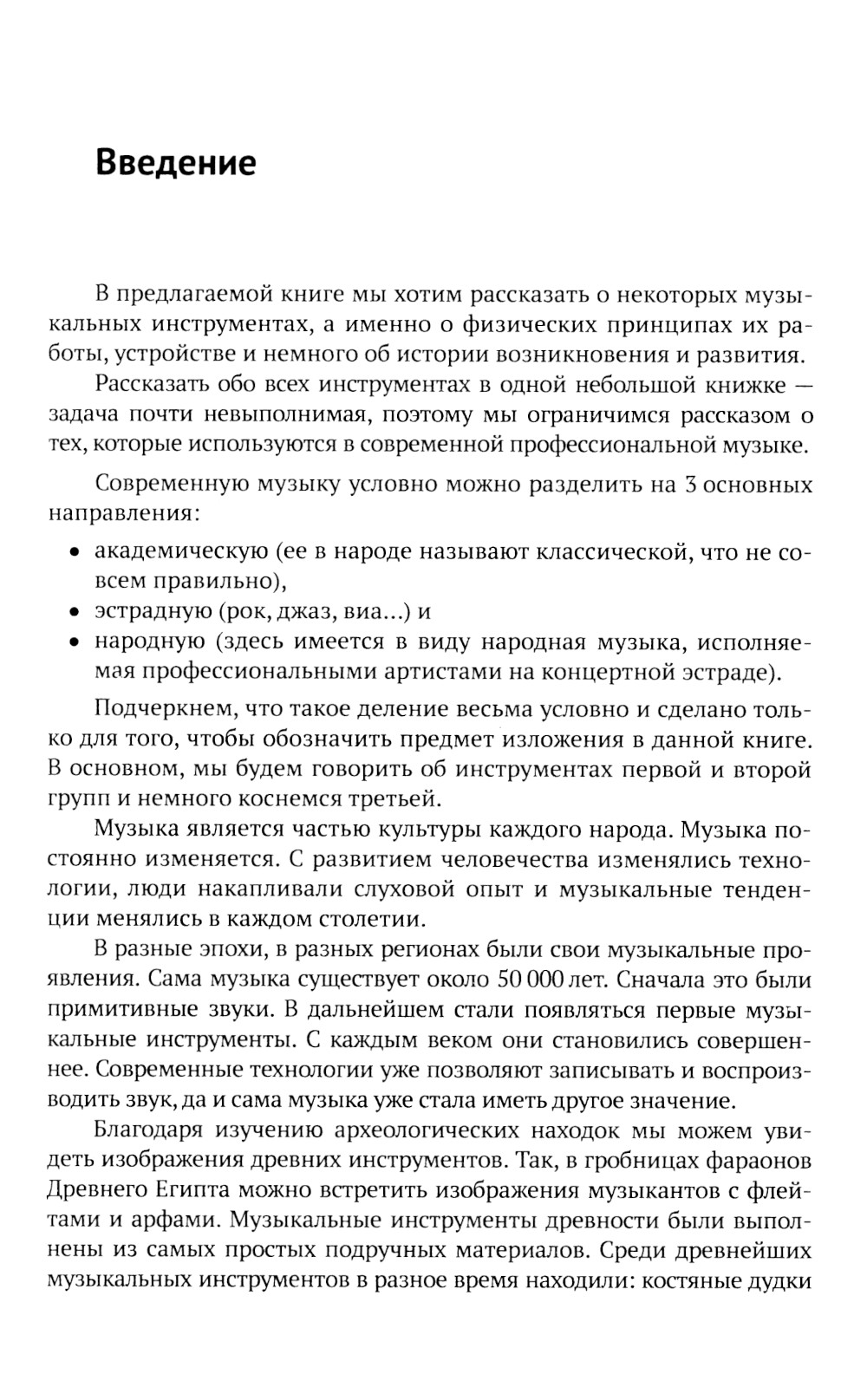 Предлагаемая книга посвящена музыкальным инструментам, которые рассматриваются, прежде всего, как технические устройства. В начале исследуется само понятие «музыкальный инструмент», определяется его структура, а также приводятся варианты их классификации. Далее коротко повествуется о звуке как физическом явлении, в той степени, в которой это необходимо для рассмотрения основной темы. Книга посвящена в основном инструментам, использующимся в современной профессиональной музыке. Описываются струнные, духовые, пневматические и электромузыкальные инструменты. Каждой из этих групп посвящены отдельные главы, в которых даются общие физические принципы, лежащие в основе работы классификационной группы инструментов, особенности устройства конкретных музыкальных инструментов и некоторые исторические сведения об их происхождении. Книга относится к популярной литературе и адресована в основном учащимся старших классов средней школы, интересующимся физикой и музыкой. Она не является пособием по инструментоведению, однако также может быть полезна студентам музыкальных училищ и консерваторий.| Издательство | ЛЕНАНД |