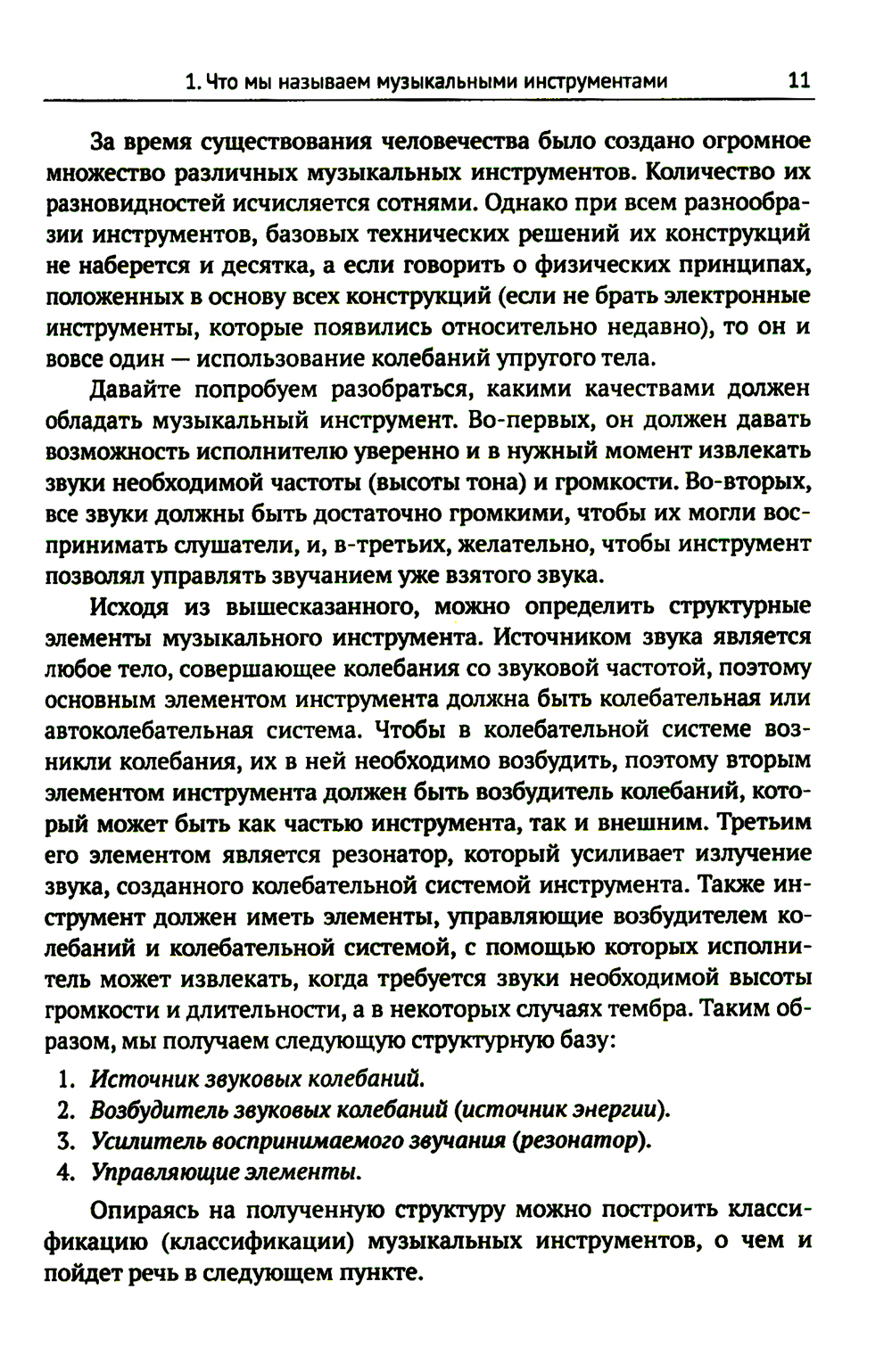 Предлагаемая книга посвящена музыкальным инструментам, которые рассматриваются, прежде всего, как технические устройства. В начале исследуется само понятие «музыкальный инструмент», определяется его структура, а также приводятся варианты их классификации. Далее коротко повествуется о звуке как физическом явлении, в той степени, в которой это необходимо для рассмотрения основной темы. Книга посвящена в основном инструментам, использующимся в современной профессиональной музыке. В ней описываются струнные, духовые, пневматические и электромузыкальные инструменты. Каждой из этих групп посвящены отдельные главы, в которых даются общие физические принципы, лежащие в основе работы классификационной группы инструментов, особенности устройства конкретных музыкальных инструментов и некоторые исторические сведения об их происхождении. Книга относится к популярной литературе и адресована в основном учащимся старших классов средней школы, интересующимся физикой и музыкой. Она не является пособием но инструментоведению, однако также может быть полезна студентам музыкальных училищ и консерваторий.| Издательство | ЛЕНАНД |