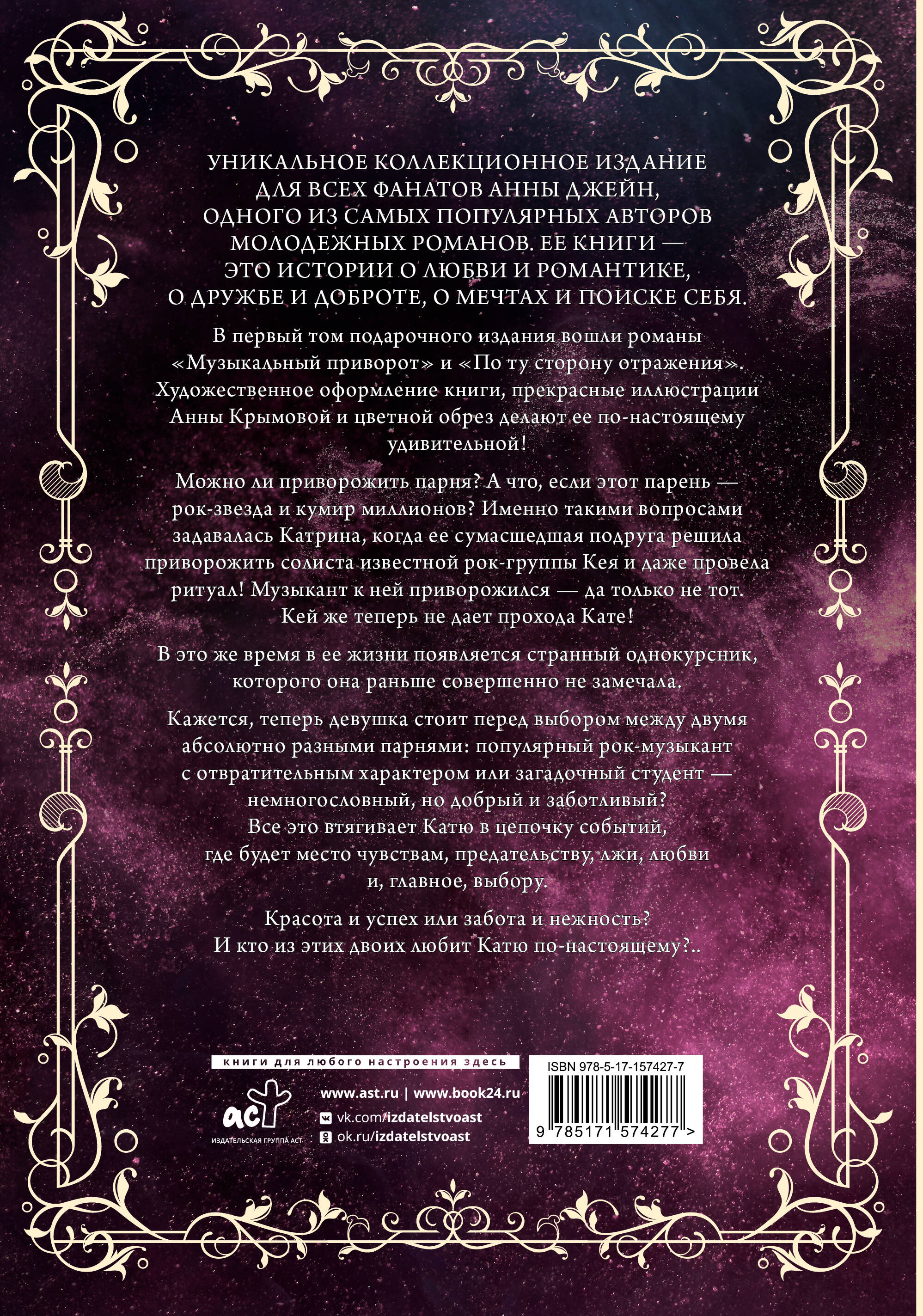 Уникальное коллекционное издание для всех фанатов Анны Джейн, одного из самых популярных авторов молодежных романов. Ее книги - это истории о любви и романтике, о дружбе и доброте, о мечтах и поиске себя. В первый том подарочного издания вошли романы "Музыкальный приворот" и "По ту сторону отражения". Художественное оформление книги, прекрасные иллюстрации Анны Крымовой и цветной обрез делают ее по-настоящему удивительной! Можно ли приворожить парня? А что, если этот парень - рок звезда и кумир миллионов? Именно такими вопросами задавалась Катрина, когда ее сумасшедшая подруга решила приворожить солиста известной рок группы Кея и даже провела ритуал! Музыкант к ней приворожился - да только не тот. Кей теперь не дает прохода Кате! В это же время в ее жизни появляется странный однокурсник, которого она раньше совершенно не замечала. Кажется, теперь девушка стоит перед выбором между двумя абсолютно разными парнями: популярный рок музыкант с отвратительным характером или загадочный студент - немногословный, но добрый и заботливый? Все это втягивает Катю в цепочку событий, где будет место чувствам, предательствам, лжи, любви и главное - выбору. Красота и успех или забота и нежность? И кто из этих двоих любит Катю по настоящему?..| Издательство | ИЗДАТЕЛЬСТВО "АСТ" |