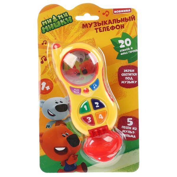 Аннотация: Музыкальный телефон Ми-ми-мишки 5 песен из м/ф, телефонные фразы и звуки, свет. Умка в кор.2*72шт