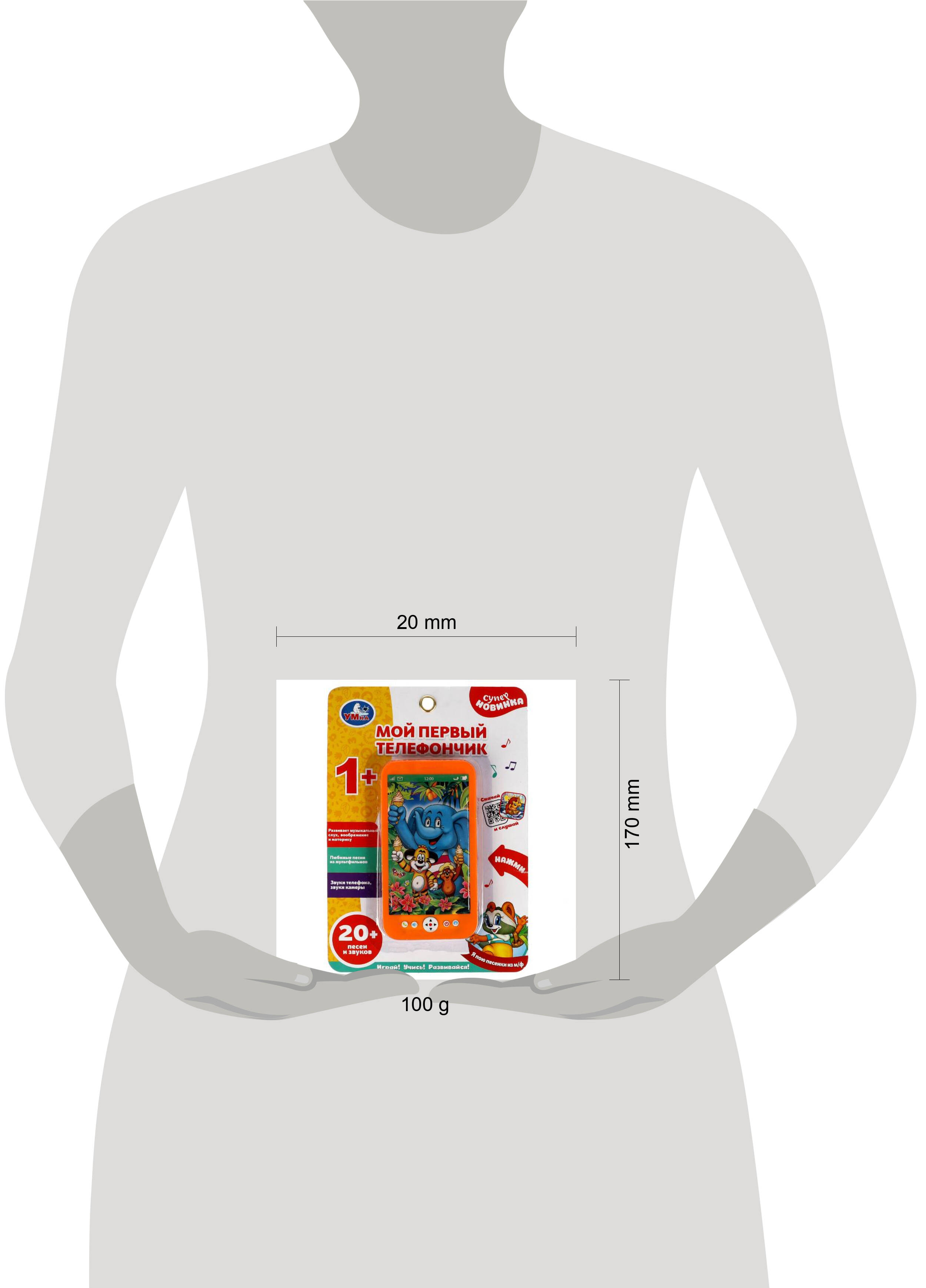 Музыкальная игрушка "Мой первый телефончик" ТМ "УМка" непременно понравится вашему ребёнку: - 10 песен из м/ф: "Облака", "Песня крокодила Гены", "Улыбка", "Голубой вагон", "Песенка Чебурашки", "Песня Шапокляк", "Песенка Мамонтёнка", "Антошка", "Мир похож на цветной луг", "Белые кораблики" - звуки телефона - звуки камеры - кнопка "Вкл./Выкл." - регулировка громкости Яркий телефон сделает обучение малыша лёгким и интересным. Он с удовольствием будет нажимать на разноцветные кнопочки и слушать весёлые песенки из мультфильмов. Компактную игрушку удобно брать с собой. Музыкальный телефон ТМ "УМка" развивает: - память - слуховое восприятие и музыкальный слух - тактильные навыки - визуальное восприятие - воображение - моторику Размер: 8 x 15 x 1 см. Материал: пластмасса. Работает от 3-х батареек типа ААА (в комплекте). Рекомендовано детям от 3-х лет.| Издательство | С-Маркет ООО |