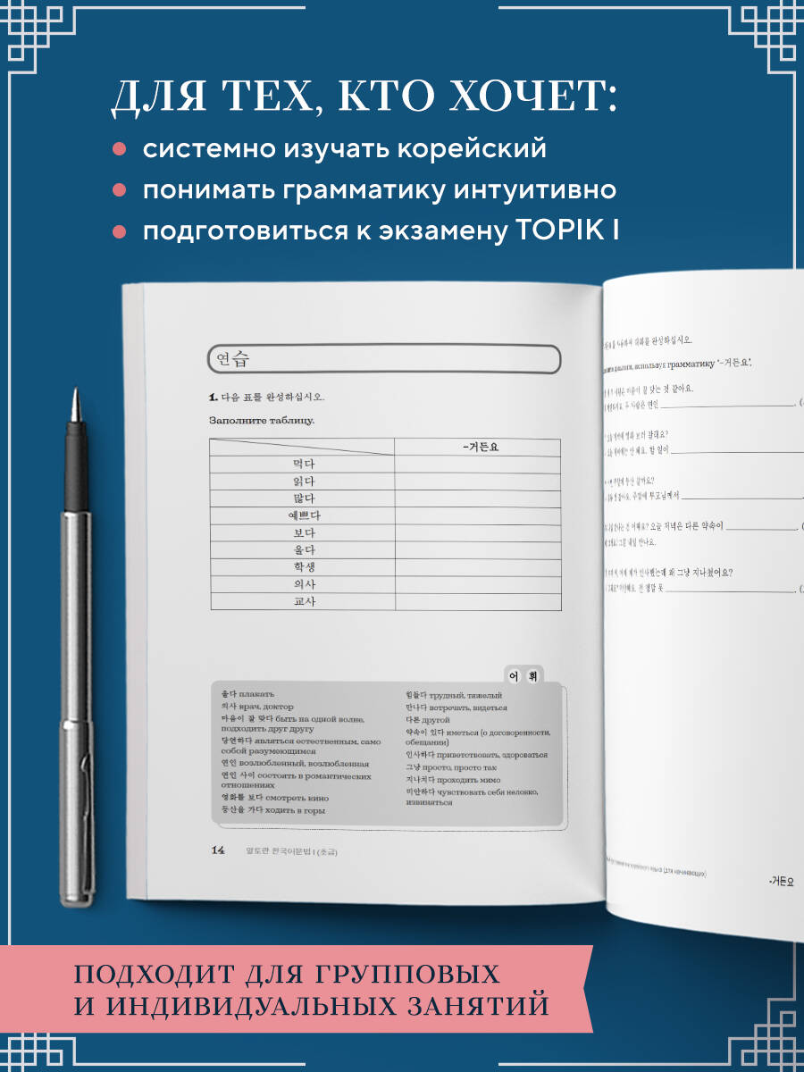 100 шагов к правильной корейской грамматике! Это пособие создано для тех, кто делает первые шаги в изучении корейского языка. Оно помогает понять основы грамматики и постепенно выстраивать уверенность в речи. Каждое правило представлено в доступной форме, сопровождается примерами из живой речи и упражнениями для практики. Пособие содержит 100 грамматических конструкций корейского языка начального уровня с пояснениями, примерами и упражнениями. Материал охватывает базу, соответствующую 1-2 уровням обучения, и может использоваться для самостоятельных занятий, работы в группе и подготовки к экзамену TOPIK I. Издание подготовлено носителем языка с учетом особенностей изучающих корейский как иностранный. Что внутри? - 100 грамматических конструкций с пояснениями и примерами; - упражнения для закрепления и мини-диалоги; - новая лексика к каждой теме; - системный курс для уровня 1-2 и подготовки к TOPIK I. Начните учить корейский язык правильно - с пособия, которое станет вашим надежным помощником и проводником!| Издательство | ООО "Издательство "Эксмо" |