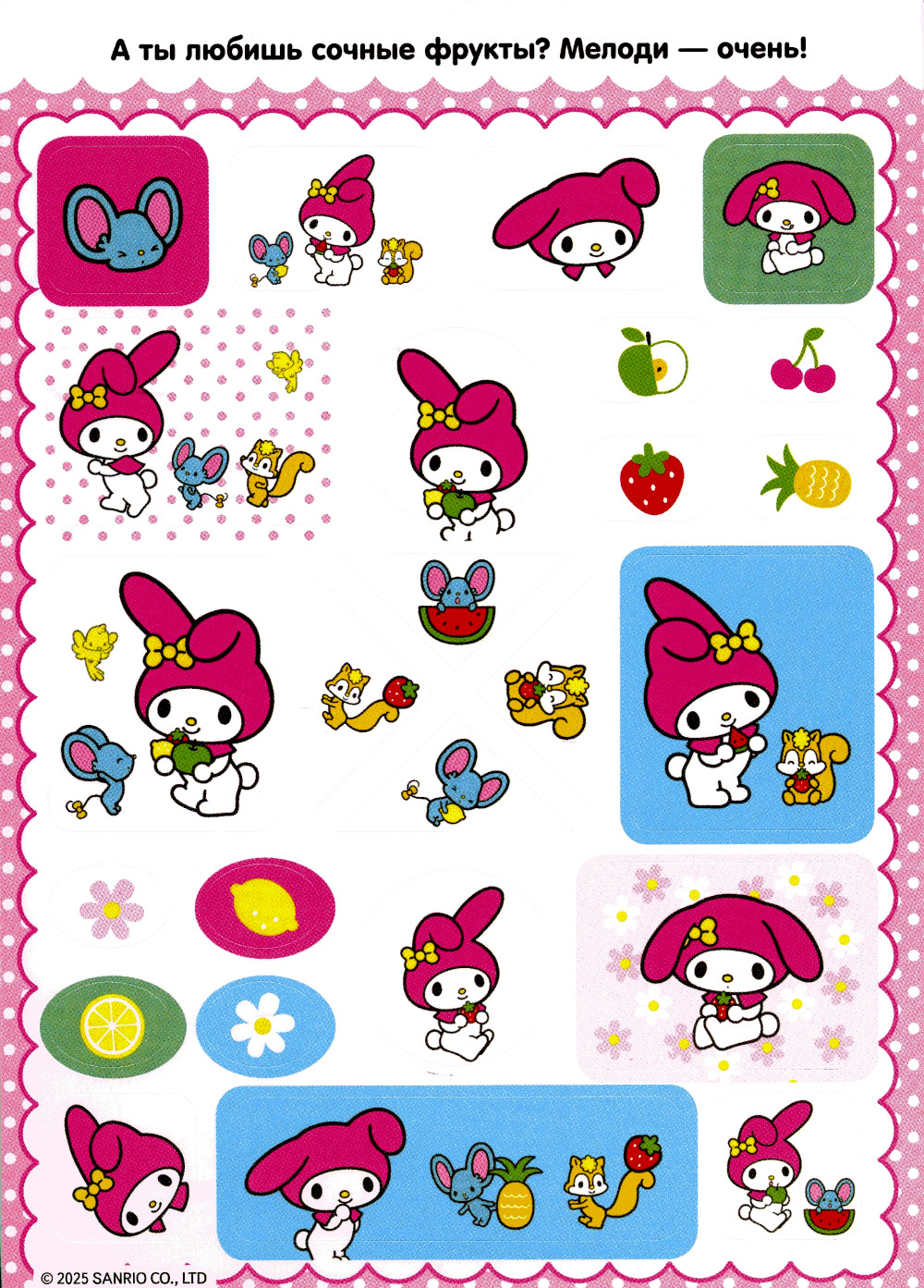 Мечтательная Мелоди очень любит милые вещицы и старается привнести красоту во всё, что её окружает. А с наклейками из этой книги ты тоже сможешь добавить очарования своим тетрадям, блокнотам, дневникам или даже украсить предметы интерьера. Не бойся фантазировать!| Издательство | АСТ |