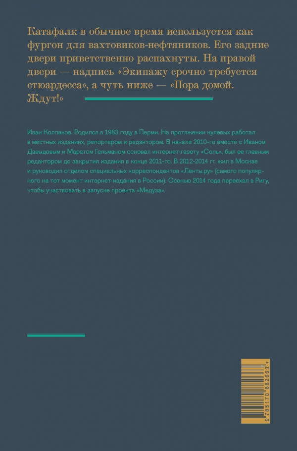 Иван Колпаков. Родился в 1983 году в Перми. На протяжении нулевых работал в местных изданиях репортером и редактором. В начале 2010 вместе с Иваном Давыдовым и Маратом Гельманом основал интернет-газету «Соль», был ее главным редактором до закрытия издания в конце 2011. В 2012-2014 гг. жил в Москве и руководил отделом специальных корреспондентов «Ленты.Ру» (самого популярного на тот момент интернет-издания в России). Осенью 2014 переехал в Ригу, чтобы участвовать в запуске проекта «Медуза».