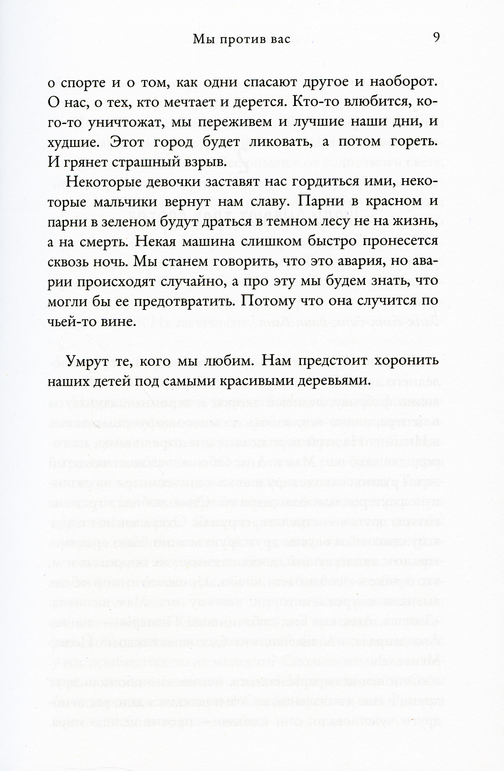 «Мы против вас» продолжает начатый в книге «Медвежий угол» рассказ о небольшом городке Бьорнстад, затерявшемся в лесах Северной Швеции. Здесь живут суровые, гордые и трудолюбивые люди, не привыкшие ждать милостей от судьбы. Все их надежды на лучшее связаны с местной хоккейной командой, рассчитывающей на победу в общенациональном турнире. Но трагические события накануне важнейшей игры разделяют население городка на два лагеря, а над клубом нависает угроза закрытия: его лучшие игроки, а затем и тренер уходят в команду соперников из соседнего городка, туда же перетекают и спонсорские деньги. Жители «медвежьего угла» растеряны и подавлены... Однако жизнь дает городку шанс - в нем появляются новые лица, а с ними - возможность возродить любимую команду, которую не бросили и стремительный Амат, и неукротимый Беньи, и добродушный увалень надежный Бубу. По мере приближения решающего матча спортивное соперничество все больше перерастает в открытую войну: одни, ослепленные эмоциями, совершают непоправимые ошибки, другие охотно подливают масла в разгорающееся пламя взаимной ненависти... К чему приведет это «мы против вас»?| Издательство | Синдбад |
