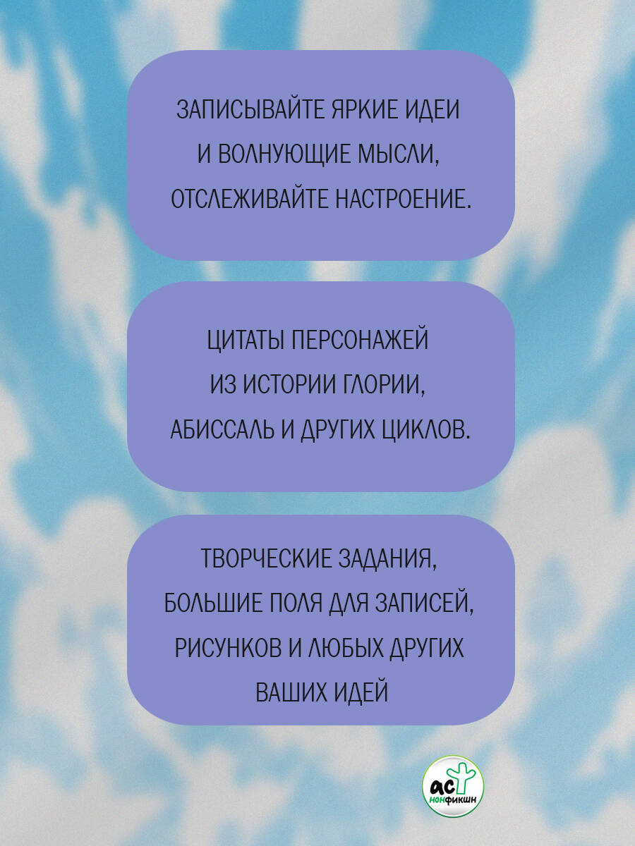 Творческий блокнот по мотивам бестселлеров Стейс Крамер, рассказывающих невероятную Глории Макфин - историю, покорившую миллионы сердец. В ваших руках не просто блокнот для записей, а настоящий инструмент для самопознания и самовыражения! Внутри собраны любимые цитаты героев из мира Глории, а также разнообразные задания, которые помогут вам не только увлекательно провести время, но и развить свои креативные способности! Погрузитесь в атмосферу творчества и вдохновения с любимыми персонажами Стейс Крамер!| Издательство | Издательство "АСТ" |
