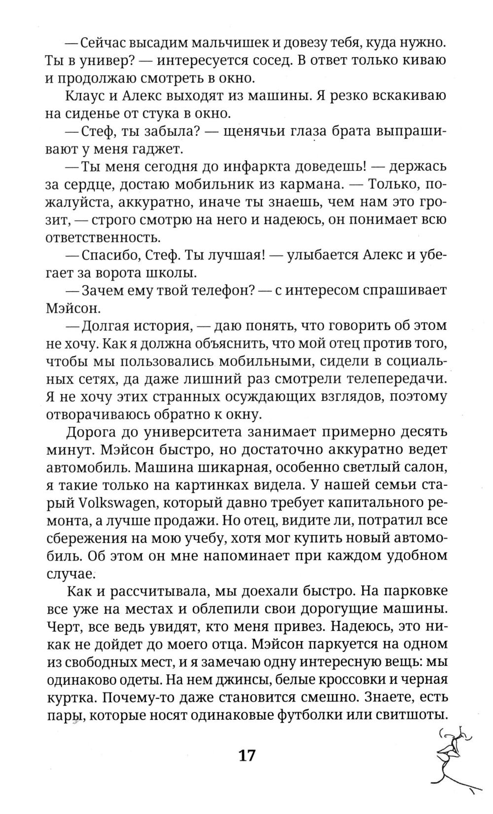СОДЕРЖИТ ИНФОРМАЦИЮ О НАРКОТИЧЕСКИХ ИЛИ ПСИХОТРОПНЫХ ВЕЩЕСТВАХ, УПОТРЕБЛЕНИЕ КОТОРЫХ ОПАСНО ДЛЯ ЗДОРОВЬЯ. ИХ НЕЗАКОННЫЙ ОБОРОТ ВЛЕЧЕТ УГОЛОВНУЮ ОТВЕТСТВЕННОСТЬ. Душераздирающий роман о первой любви и боли от Авроры Атталь, автора остросюжетных любовных романов, которые содержат в себе слишком много драмы и стекла. Стефания - обычная девушка. Живя в полноценной семье, она постоянно чувствует одиночество. Деспотичный отец диктует свои правила и изводит её каждый день: неправильно одета, слишком громко разговаривает, совсем не думает о мнении других - это она слышит ежедневно. Стеф мечтает прожить яркую и, главное, самостоятельную жизнь. Сбежать из маленького городка в Нью-Йорк и наконец-то делать то, что хочется ей. Но становится сложно двигаться к своей цели, когда появляется первая любовь. Мэйсон - мечта каждой. Красивый, харизматичный, дающий надежду на лучшее. Но смогут ли они сохранить свои чувства под гнётом сложных обстоятельств? Сможет ли Стеф исполнить свою мечту после всего случившегося? Мы можем только надеяться.| Издательство | Дримбук |