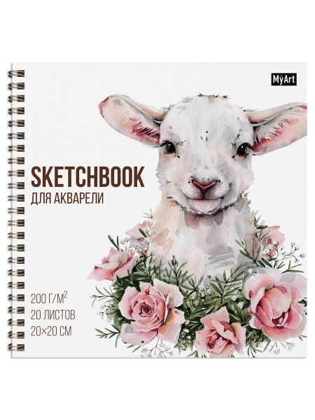 MyArt. СКЕТЧБУК для АКВАРЕЛИ на гребне. ЯГНЁНОК В РОЗАХ