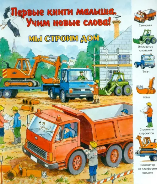 Вот строится дом для семьи Бориса и Лены. Брат с сестрой решили наблюдать за ходом строительства от возведения фундамента до отделочных работ. Прими в этом участие и ты! На полях книги изображены различные предметы. Рассматривать их и находить такие же на основной картинке очень увлекательно! Материала для изучения хватит надолго!