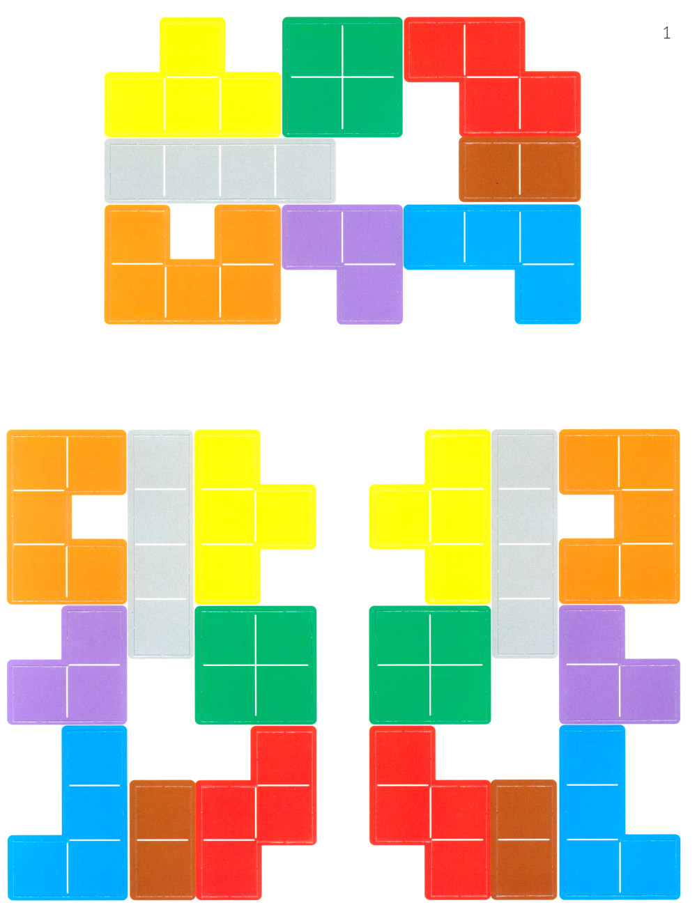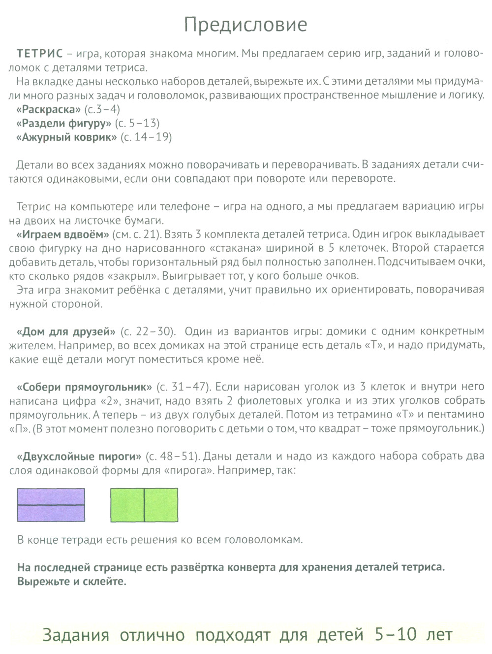 ТЕТРИС - игра, которая знакома многим. Мы предлагаем серию игр, заданий и головоломок с деталями тетриса. На вкладке даны несколько наборов деталей, вырежьте их. С этими деталями мы придумали много разных задач и головоломок, развивающих пространственное мышление и логику. Детали во всех заданиях можно поворачивать и переворачивать. В заданиях детали считаются одинаковыми, если они совпадают при повороте или перевороте. В конце тетради есть решения ко всем головоломкам. На последней странице есть развёртка конверта для хранения деталей тетриса. Вырежьте и склейте. Задания отлично подходят для детей 5-10 лет.| Издательство | МЦНМО |
