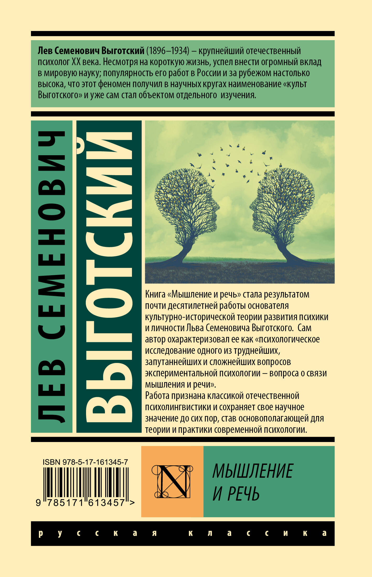Книга "Мышление и речь" стала результатом почти десятилетней работы основателя культурно-исторической теории развития психики и личности Льва Семеновича Выготского. Сам автор охарактеризовал ее как "психологическое исследование одного из труднейших, запутаннейших и сложнейших вопросов экспериментальной психологии - вопроса о связи мышления и речи". Работа признана классикой отечественной психолингвистики и сохраняет свое научное значение до сих пор, став основополагающей для теории и практики современной психологии.| Издательство | Издательство "АСТ" |
