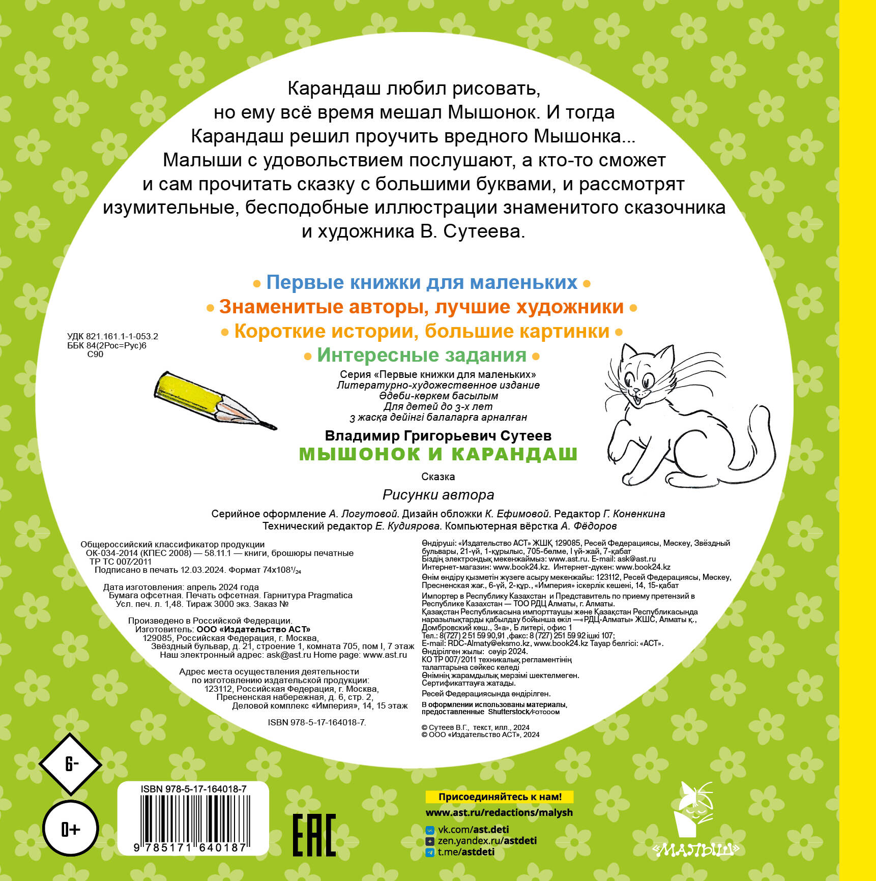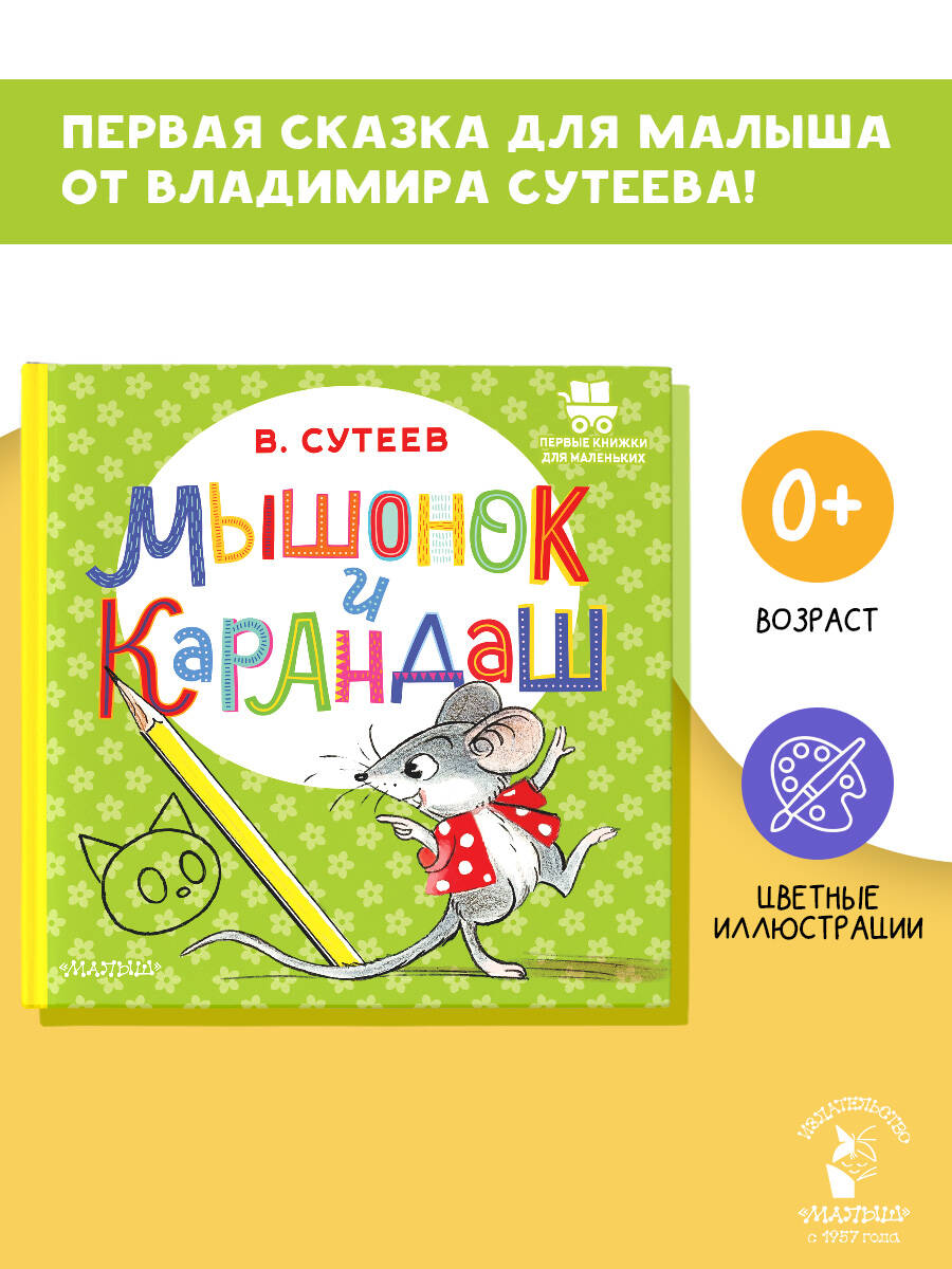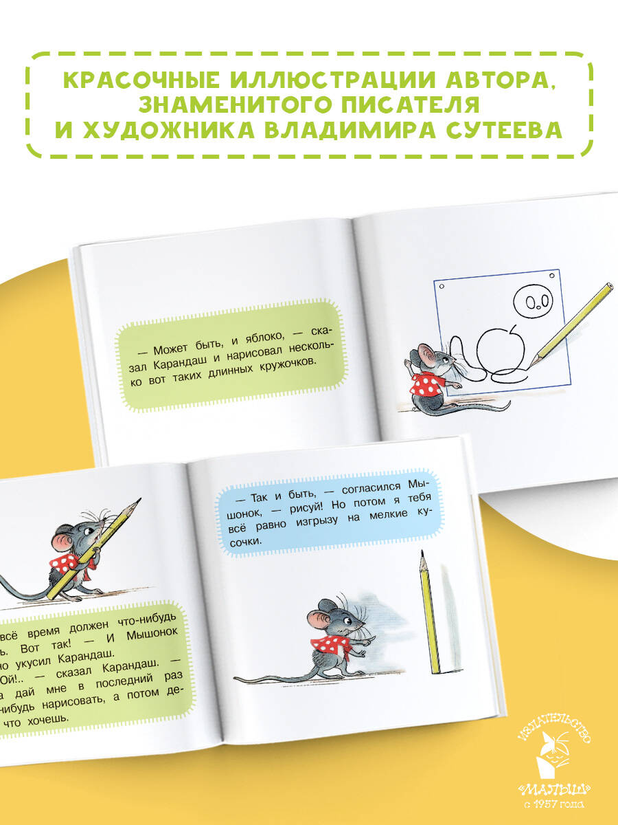 Карандаш любил рисовать, но ему всё время мешал Мышонок. И тогда Карандаш решил проучить вредного Мышонка... Малыши с удовольствием послушают, а кто-то сможет и сам прочитать сказку с большими буквами, и рассмотрят изумительные, бесподобные иллюстрации знаменитого сказочника и художника В. Сутеева. • Первые книжки для маленьких • Знаменитые авторы, лучшие художники • Короткие истории, большие картинки • Интересные задания| Издательство | Издательство "АСТ" |