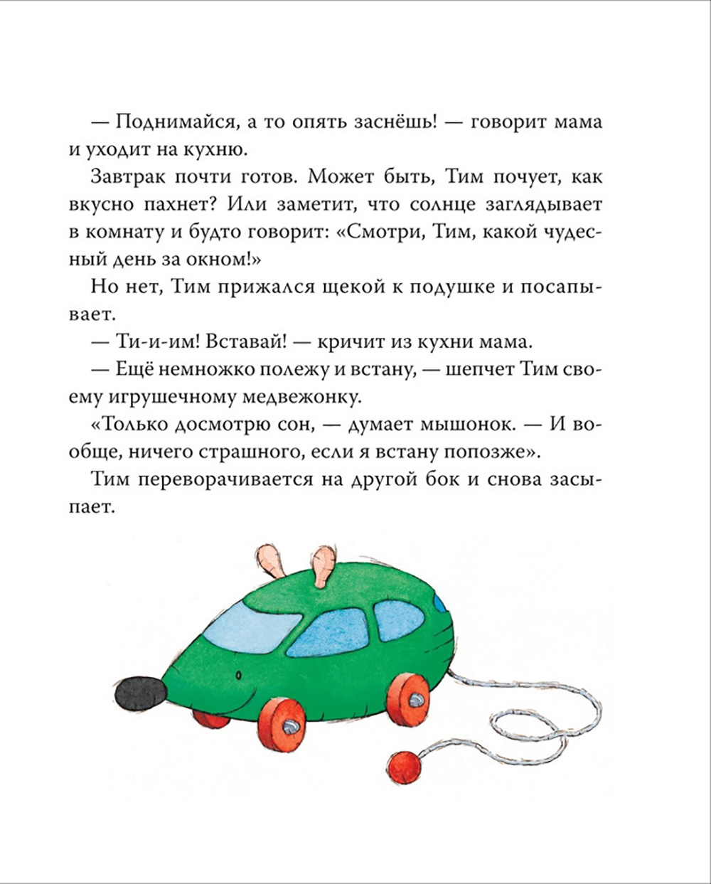 Мышонок Тим - обаятельный герой книг, который помогает детям понять свои эмоции и справиться с ними. В каждой книге Тим сталкивается с новой ситуацией, которая учит его признавать и называть свои чувства, общаться со сверстниками и справляться с трудными моментами. Серия книг о Мышонке Тиме: - материал, одобренный детскими психологами - ценные подсказки, как помочь ребенку и разрешить повседневные вопросы воспитания - помощь в эмоциональном развитии малыша - бестселлер в Европе, покоривший российскую аудиторию родителей - сочетание художественной литературы с элементами научно-популярных книг в области детской психологии - чудесные иллюстрации итальянского художника Марко Компанеллы Как быть, если малыш совершенно не торопится, не соблюдает привычный распорядок и опаздывает? Мышонок Тим поможет справиться с такой ситуацией и покажет, почему же так важно делать все дела вовремя!| Издательство | РОСМЭН |