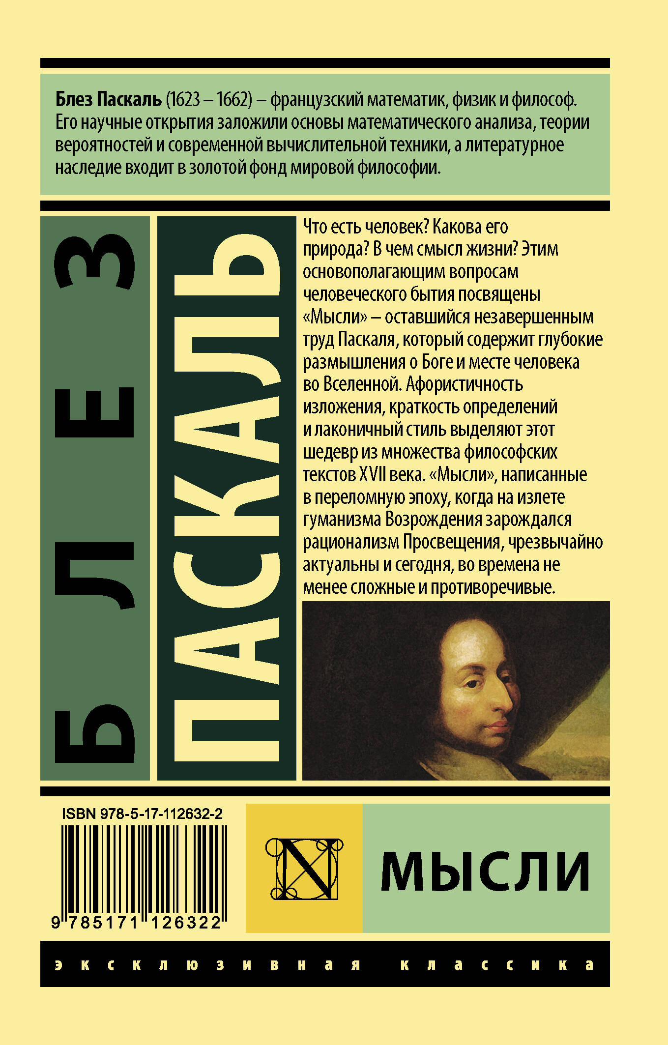 Что есть человек? Какова его природа? В чем смысл жизни? Этим основополагающим вопросам человеческого бытия посвящены "Мысли" - оставшийся незавершенным труд Паскаля, который содержит глубокие размышления о Боге и месте человека во Вселенной. Афористичность изложения, краткость определений и лаконичный стиль выделяют этот шедевр из множества философских текстов XVII века. "Мысли", написанные в переломную эпоху, когда на излете гуманизма Возрождения зарождался рационализм Просвещения, чрезвычайно актуальны и сегодня, во времена не менее сложные и противоречивые.| Издательство | ИЗДАТЕЛЬСТВО "АСТ" |