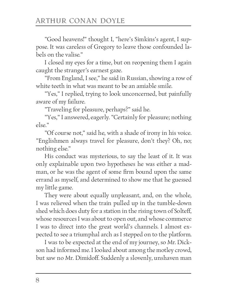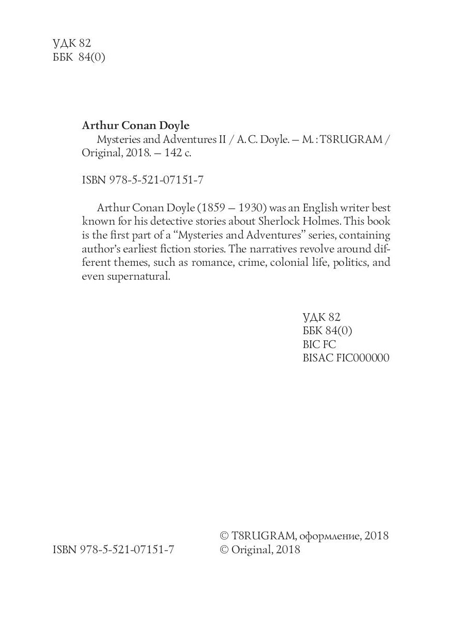 Arthur Conan Doyle (1859 - 1930) was an English writer best known for his detective stories about Sherlock Holmes. This book is the first part of a "Mysteries and Adventures" series, containing author's earliest fiction stories. The narratives revolve around different themes, such as romance, crime, colonial life, politics, and even supernatural.