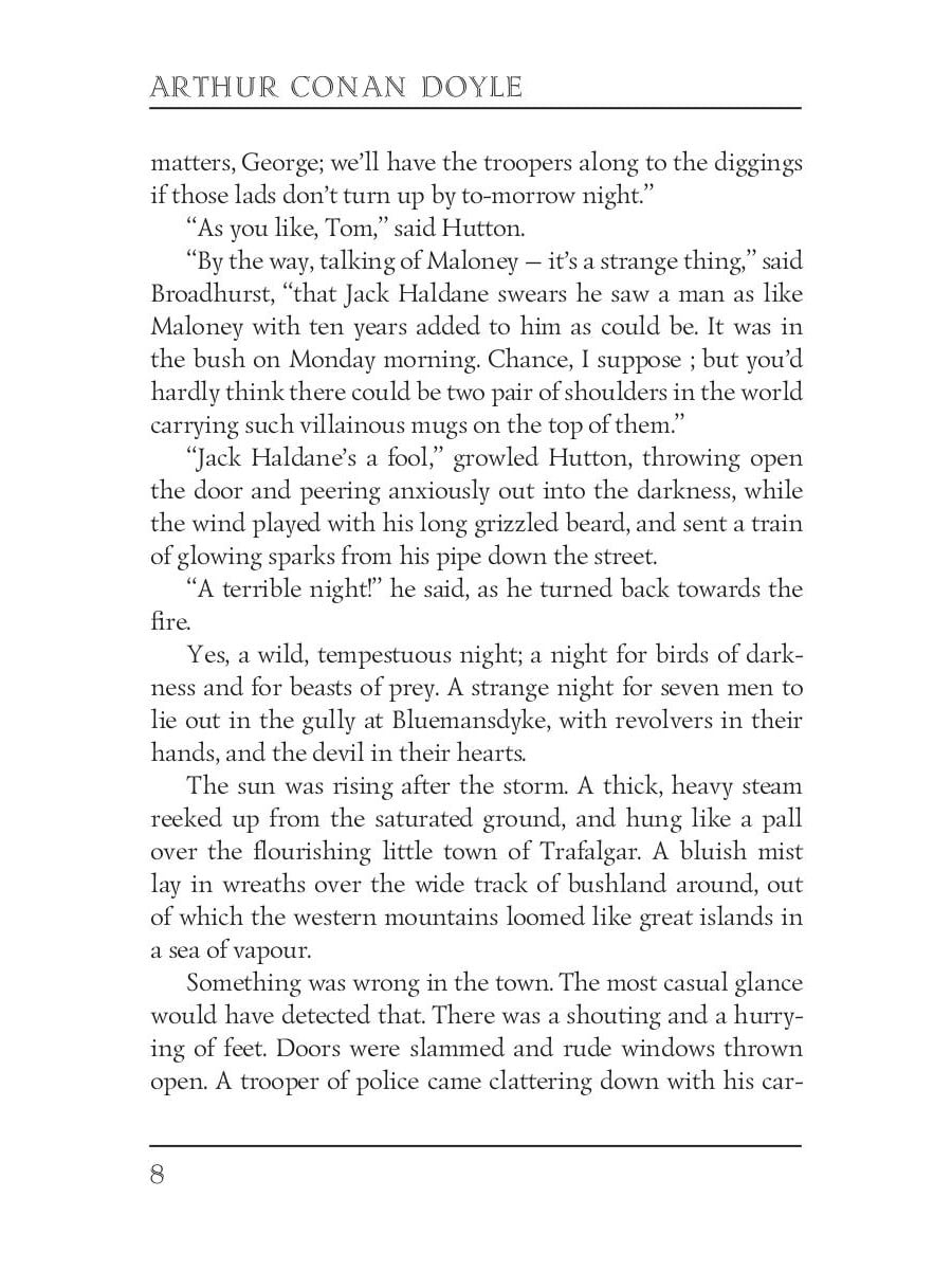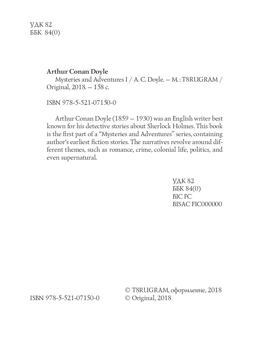 Arthur Conan Doyle (1859-1930) was an English writer best known for his detective stories about Sherlock Holmes. This book is the first part of a "Mysteries and Adventures" series, containing author's earliest fiction stories. The narratives revolve around different themes, such as romance, crime, colonial life, politics, and even supernatural.