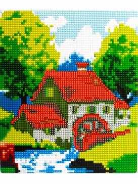 Н-р для дет.творч.Алмаз. моз. (класс.) 21х25 см на карт.с част. заполн.MyArt. ДОМИК У РЕКИ. НД-1444