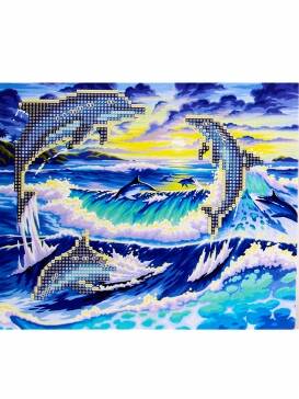 Н-р для дет.творч.Алмаз. мозаика (класс.) 21х25 см на карт.с част. заполн.MyArt. ДЕЛЬФИНЫ. НД-1457