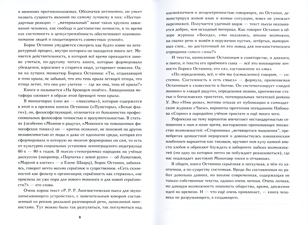 В книгу известного петербургского писателя Бориса Останина вошли произведения, ставшие в свое время заметным явлением литературного андеграунда: диалоги, пьесы, миниатюры, а также критические статьи и эссе разных лет, в том числе написанные в соавторстве с А. Драгомощенко, А. Кобаком, О. Кушлиной.| Издательство | Т8 RUGRAM |