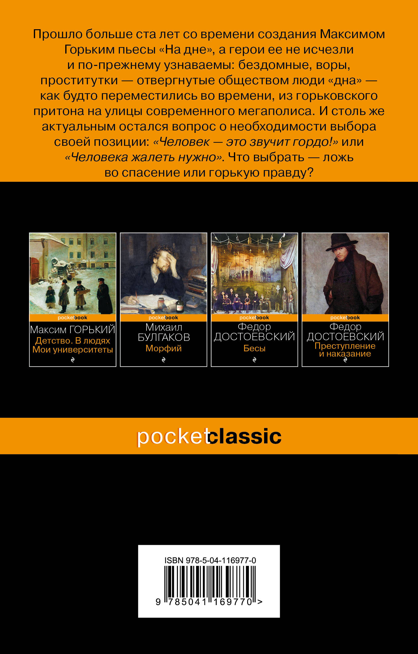 В свое время пьеса «На дне» была запрещена к постановке на имперской сцене, первая постановка осуществлена в МХТ К. Станиславским и В. Немировичем-Данченко, и сам К. Станиславский выступил в ней в роли Сатина. В драматургии Максима Горького «На дне» занимает особое место - критики называют ее одним из лучших произведений мировой драматургии, и поставлена пьеса на всех лучших мировых театральных площадках.| Издательство | ООО "Издательство "Эксмо" |