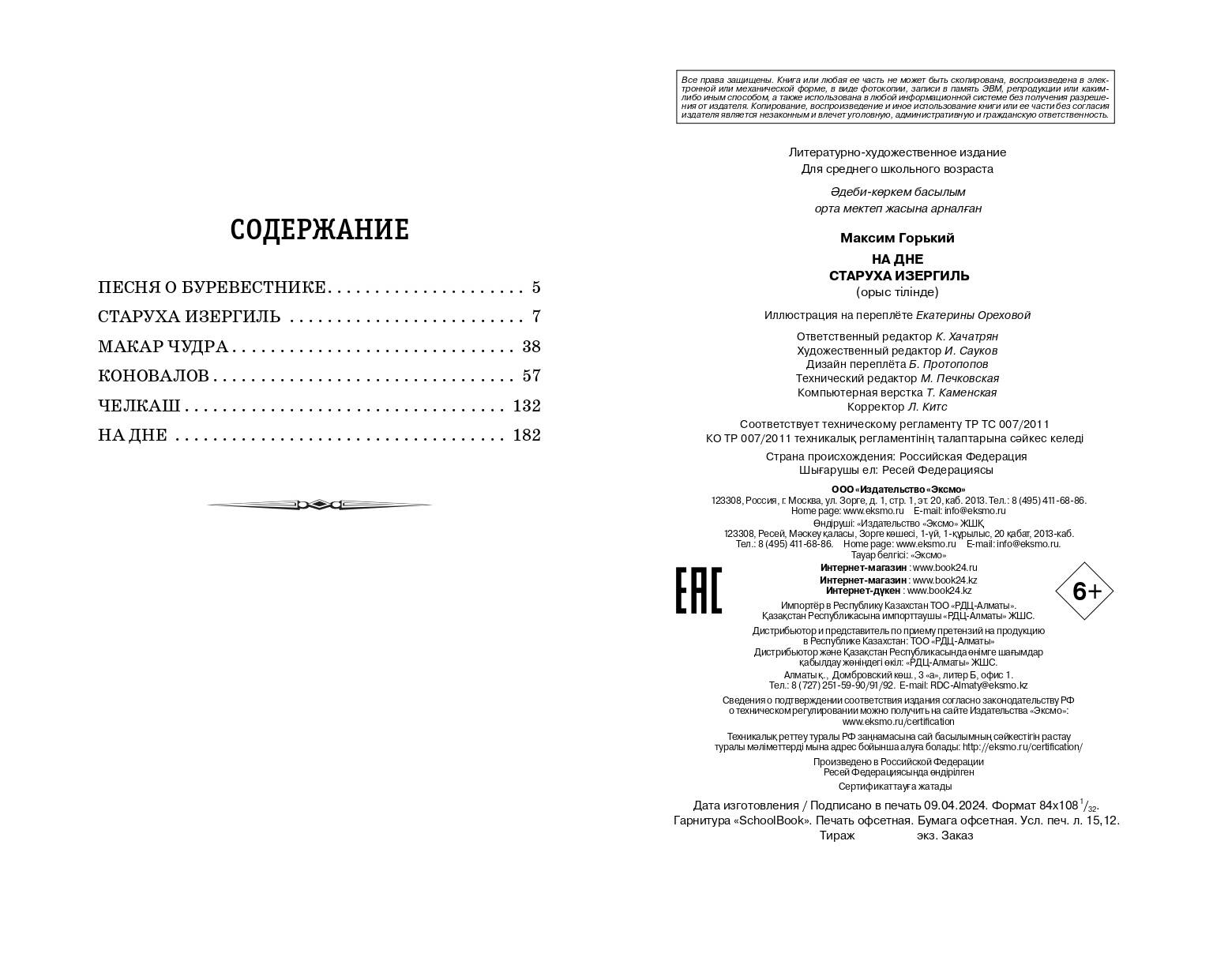 Максим Горький - одна из ключевых фигур советской литературы. Он прошёл путь от начинающего автора романтических произведений до писателя с мировым именем. В сборник вошли самые известные ранние произведения Максима Горького - драма «На дне», до сих пор не сходящая с лучших театральных сцен мира, стихотворение в прозе «Песня о Буревестнике», рассказы «Челкаш», «Коновалов», «Старуха Изрегиль», а также шедевр романтической прозы Горького «Макар Чудра». Произведения входят в программу по литературе для средней и старшей школы. В серии «Детская библиотека» собраны лучшие произведения отечественной и мировой литературы для детей от 5 до 16 лет. Это фольклор и литературные сказки, стихи, рассказы и повести выдающихся писателей-классиков. Все произведения входят в образовательные программы по литературе и рекомендованы Министерством просвещения РФ для изучения в школе и самостоятельного чтения.| Издательство | ООО "Издательство "Эксмо" |