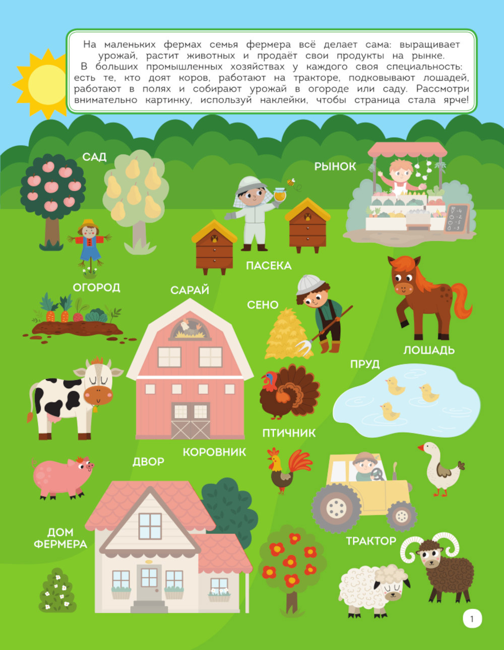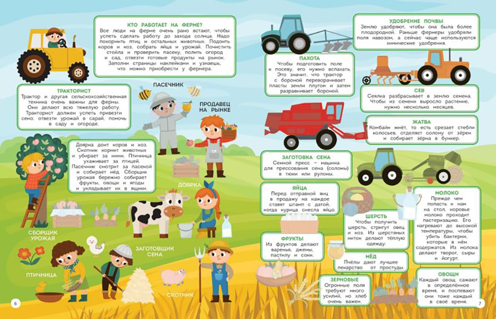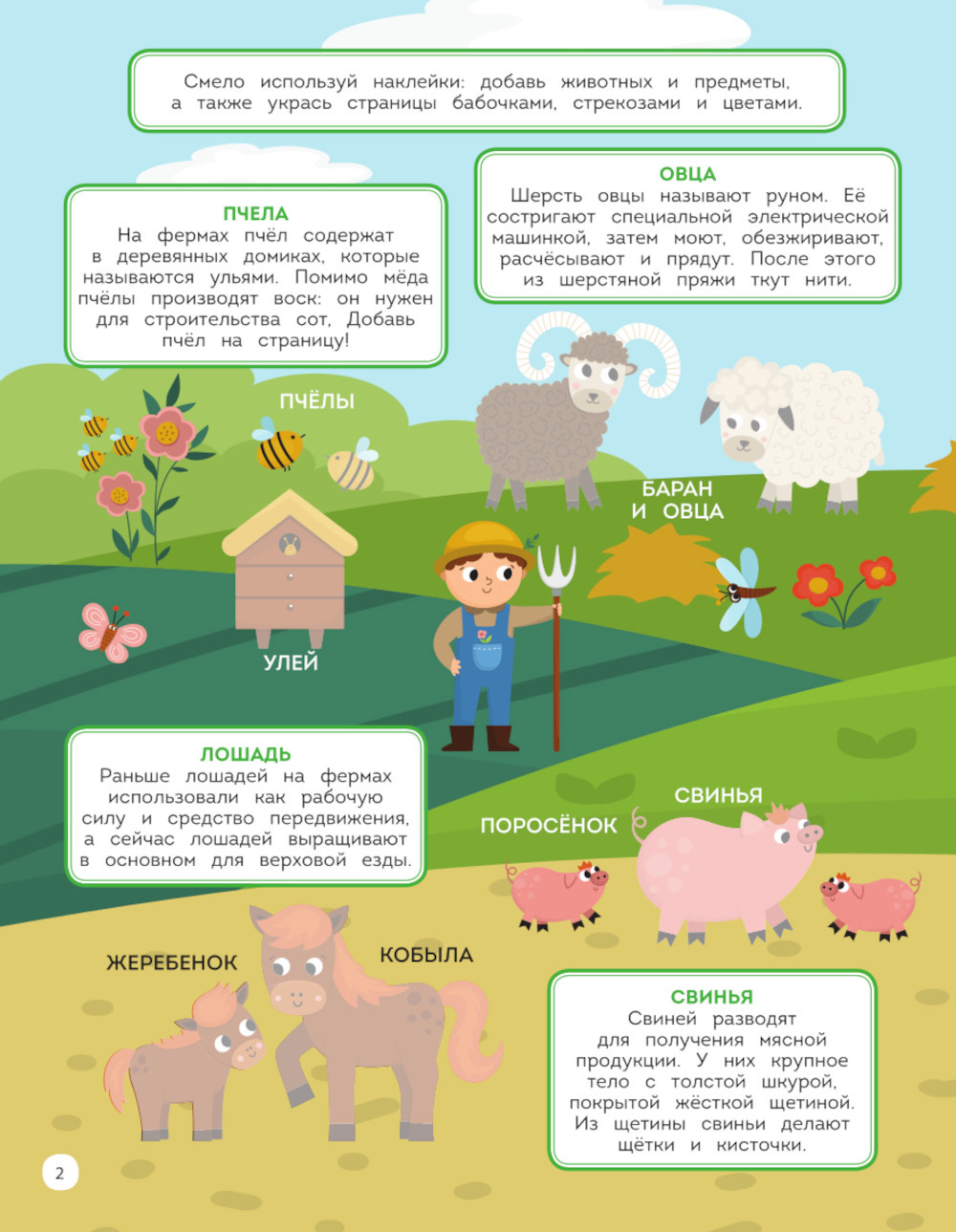 Обучающая книга-игра и более 150 ярких наклеек для любознательных озорников! Отправляйся в гости к фермеру и познакомься с самыми милыми (и полезными!) зверушками! Ты узнаешь, какие животные живут на ферме, какие машины-помощники помогают их хозяину, пройдешь запутанный лабиринт, окажешься на фермерской ярмарке... А ещё сможешь весело провести время с коллекцией ярких наклеек!| Издательство | Эксмо |