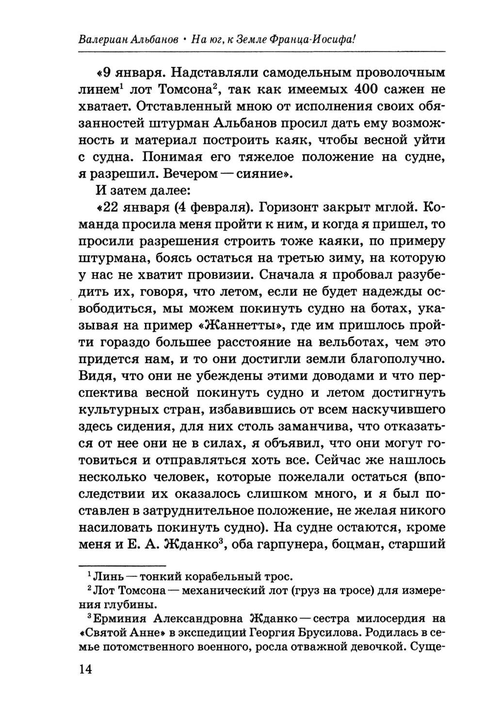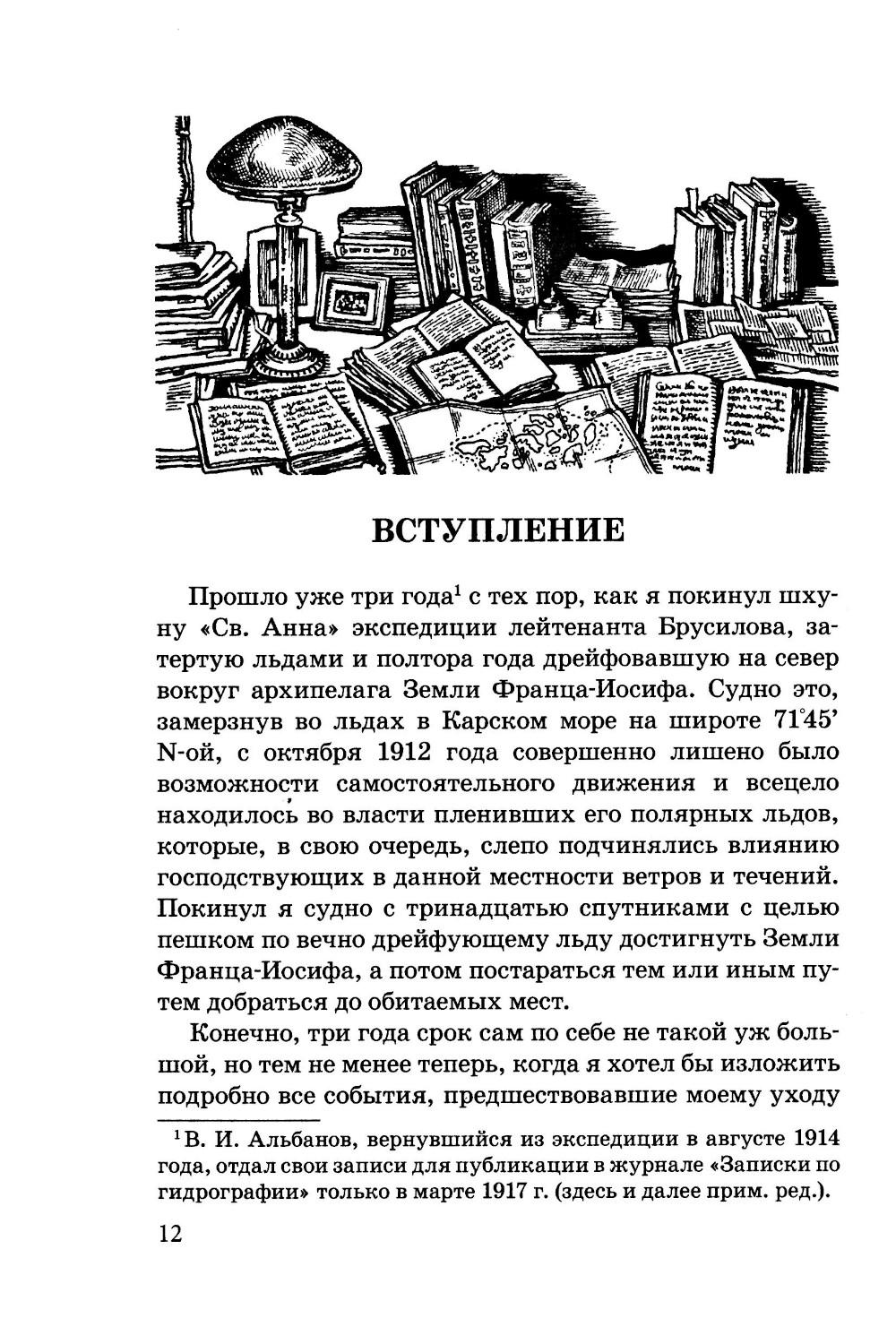Эта книга - дневник русского моряка Валериана Альбанова, участника трагической полярной экспедиции на шхуне «Святая Анна». Судно, закованное во льдах Арктики, полтора года дрейфовало севернее Земли Франца-Иосифа, прежде чем половина экипажа во главе со штурманом Альбановым решила идти до земли пешком по льду. В результате труднейшего похода живыми из этого отряда до родины добрались только двое - сам Валериан Альбанов и матрос Конрад. О судьбе людей, оставшихся дрейфовать на «Святой Анне», до сих пор ничего неизвестно. Для широкого круга читателей.| Издательство | РуДа |