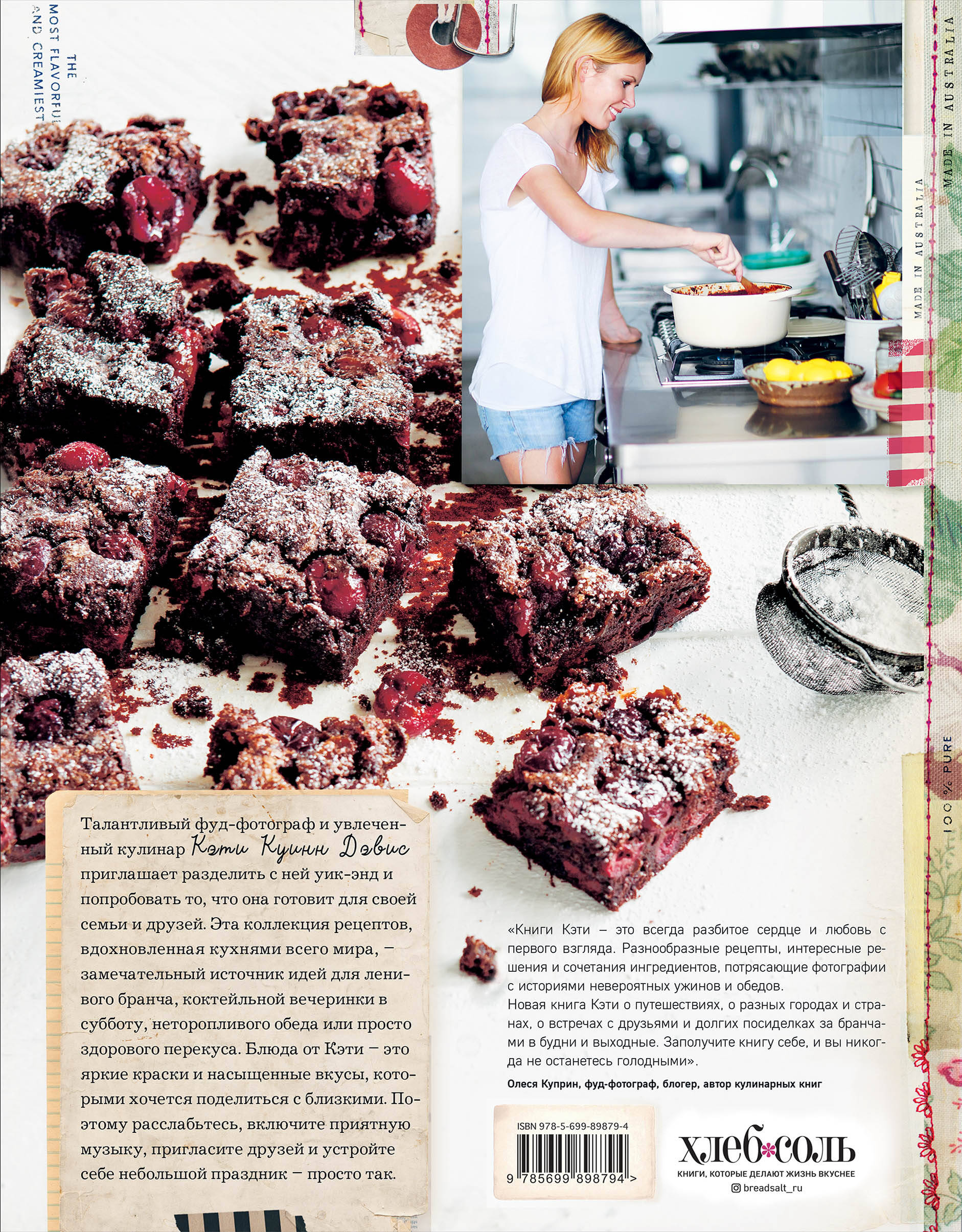 Талантливый фуд-фотограф и увлеченный кулинар Кэти Куинн Дэвис приглашает разделить с ней уик-энд и попробовать то, что она готовит для своей семьи и друзей. Эта коллекция рецептов, вдохновленная кухнями со всего мира, - замечательный источник идей для ленивого бранча, коктейльной вечеринки в субботу, неторопливого обеда или просто здорового перекуса. Блюда от Кэти - это яркие краски и насыщенные вкусы, которыми хочется поделиться с близкими. Поэтому расслабьтесь, включите приятную музыку, пригласите друзей и устройте себе небольшой праздник - просто так.| Издательство | ООО "Издательство "Эксмо" |