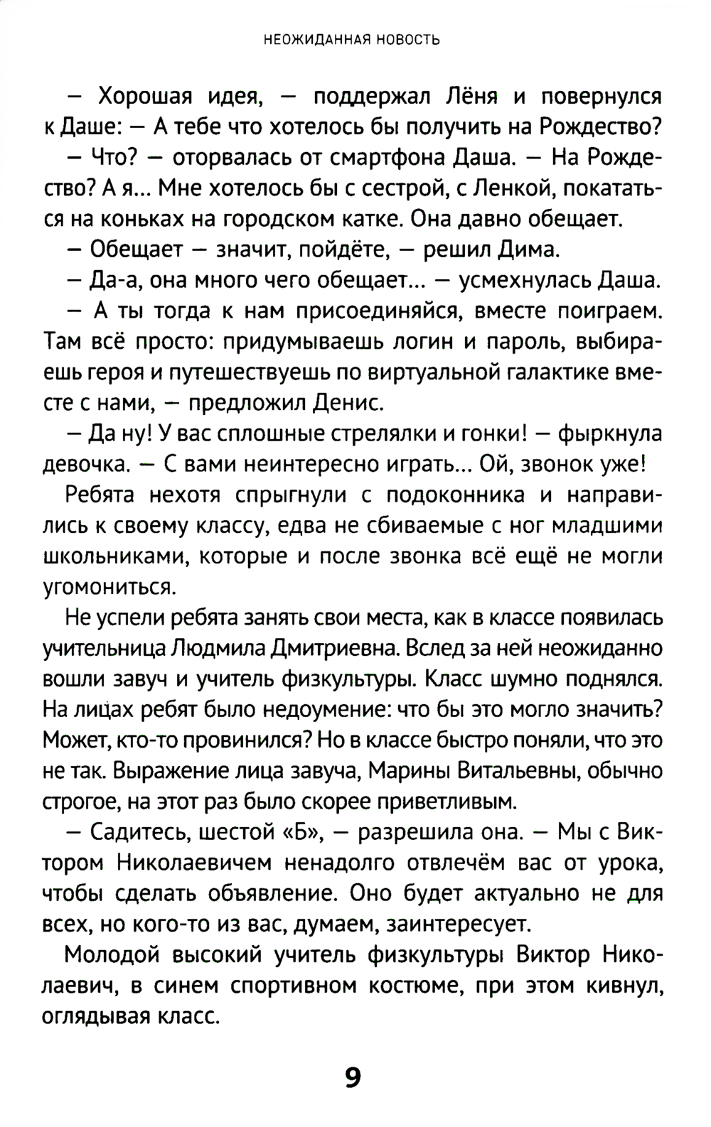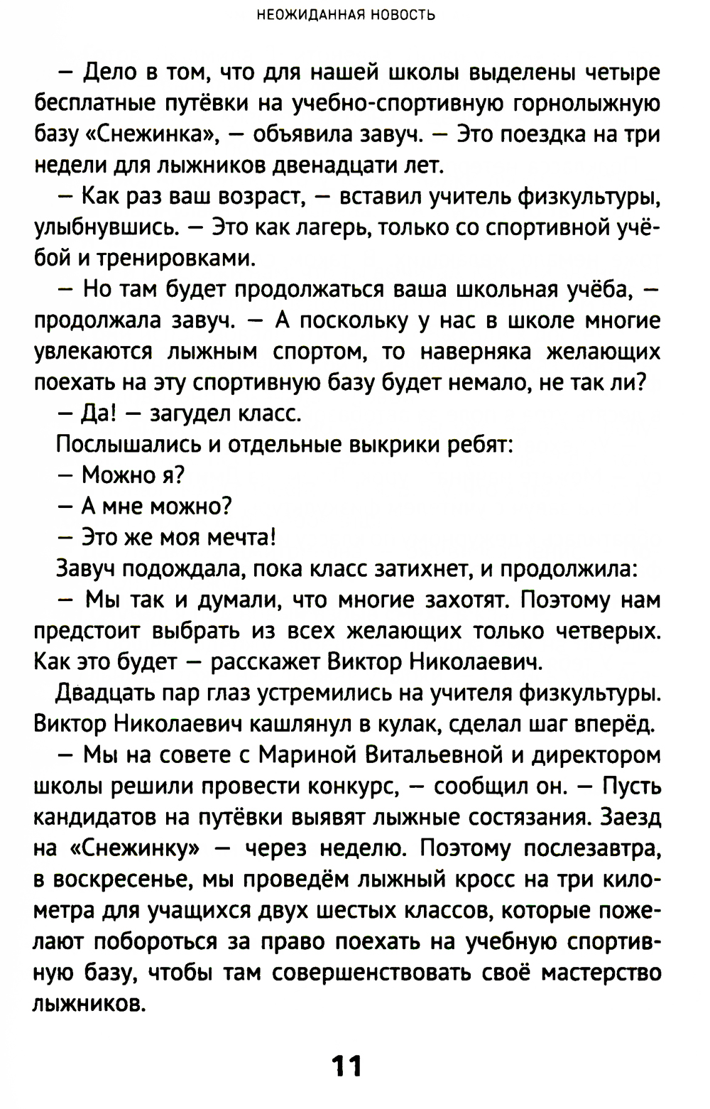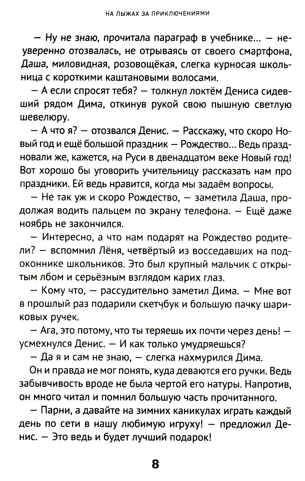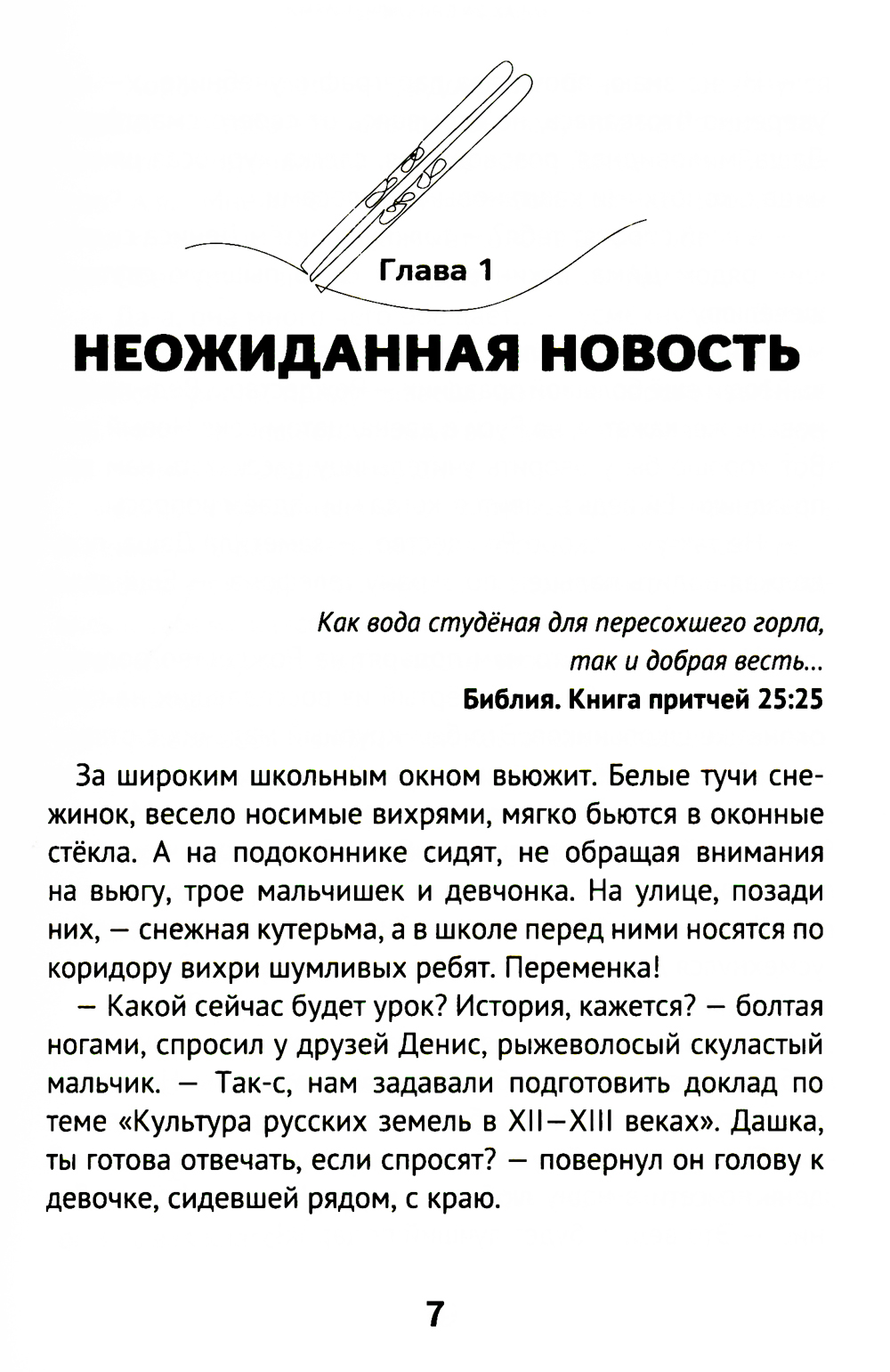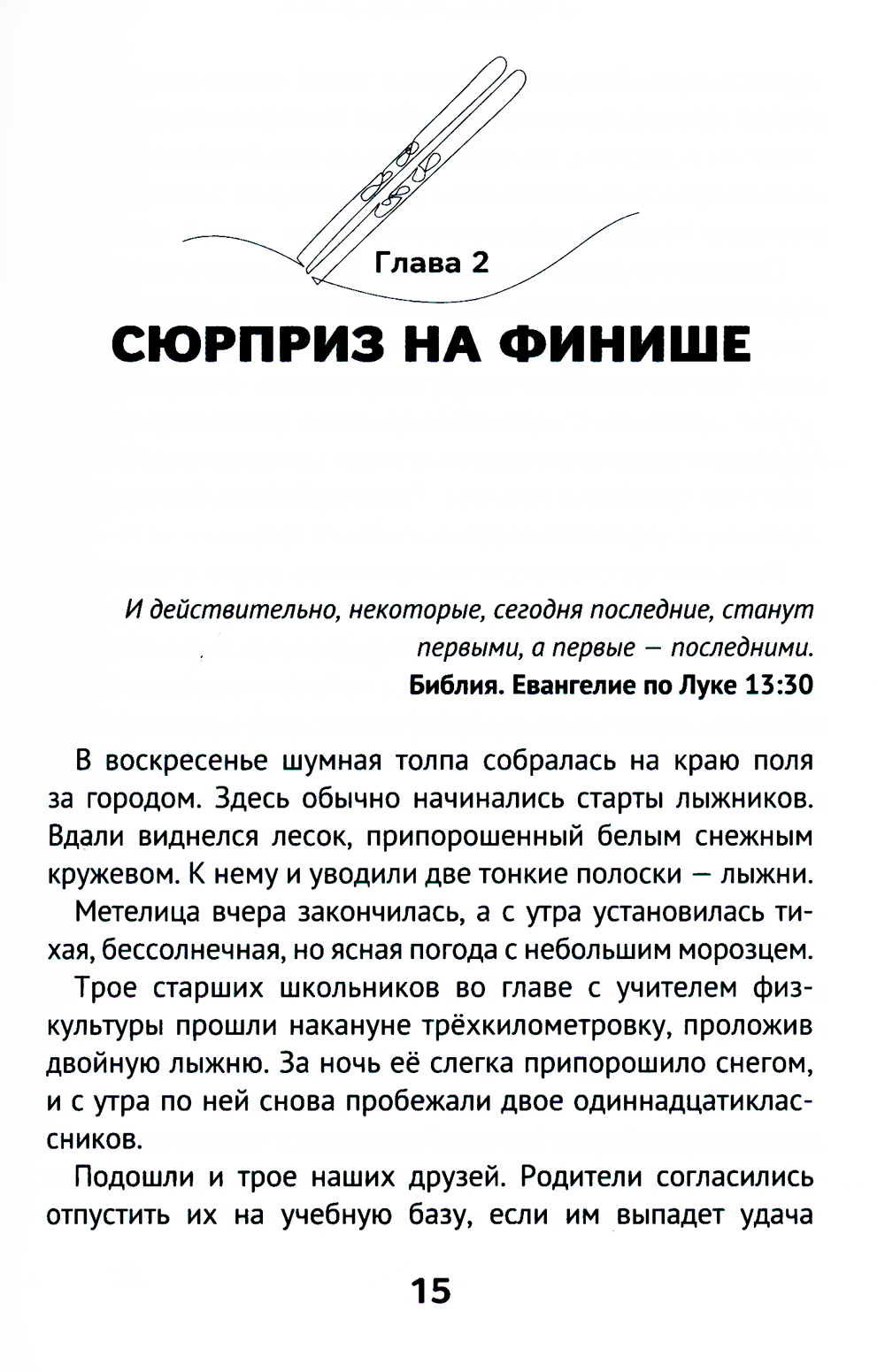 Данная книга представляет собой целый «калейдоскоп» происшествий и приключений четверых друзей. В школе организовываются соревнования, которые определят счастливых обладателей путёвок на лыжную учебную базу «Снежинка». Денис, Дима, Лёня и Даша решают побороться за победу. Получится ли у них прийти к финишу первыми? Как пройдут их зимние каникулы? Вместе с героями книги читатели переживут интересные события, пройдут через множество трудностей, испытают радость от помощи нуждающимся и поразмышляют о смысле Рождества, о Младенце Иисусе и Его миссии в нашем мире.| Издательство | Источник жизни |