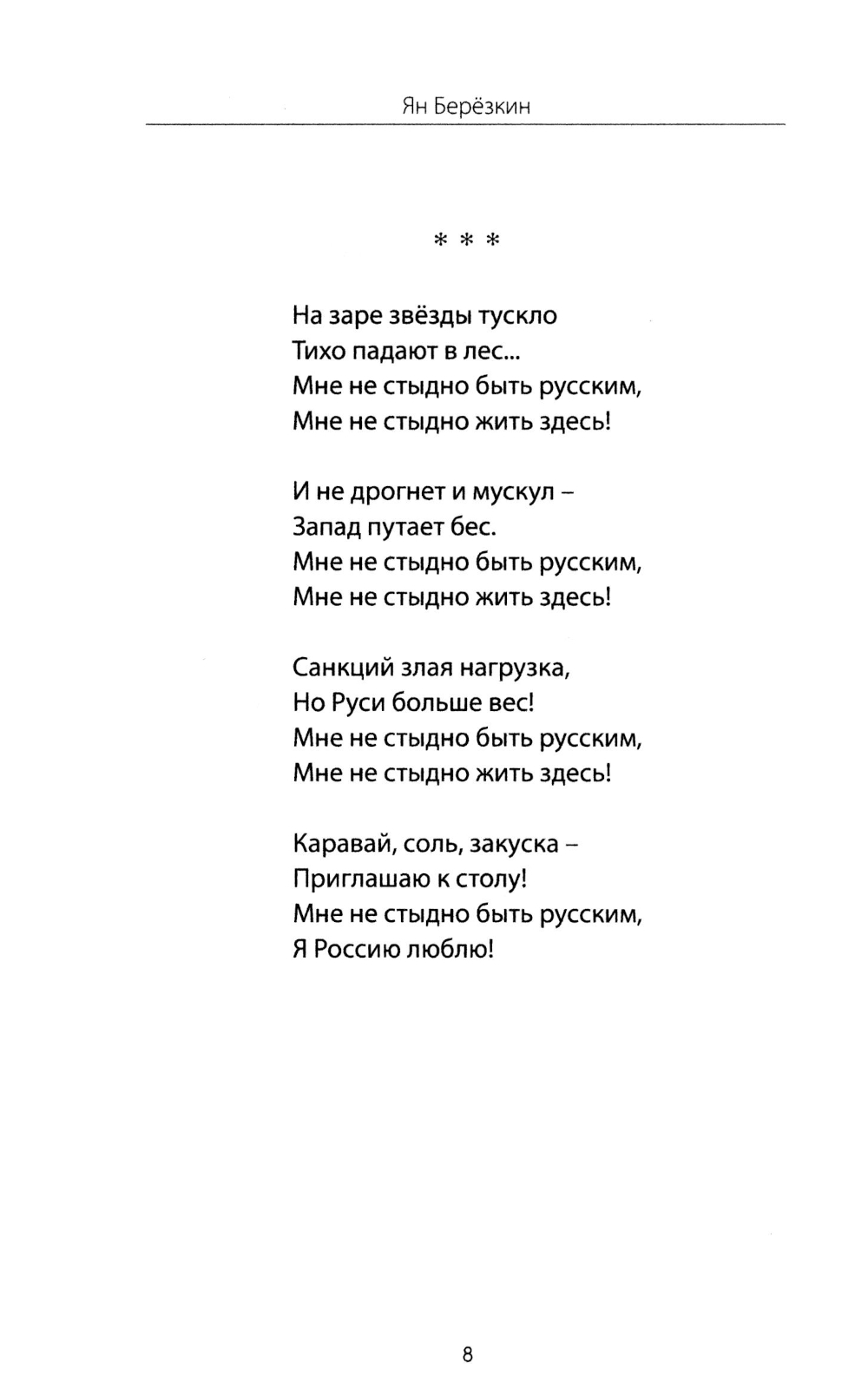 За плечами Берёзкина почти два десятка командировок на Сирийскую войну и более двадцати на поля сражений специальной военной операции. В своих стихах поэт пишет только то, что видел и пережил лично, о своих фронтовых товарищах, о военных буднях, о горестях и радостях окопной жизни.| Издательство | Вече |