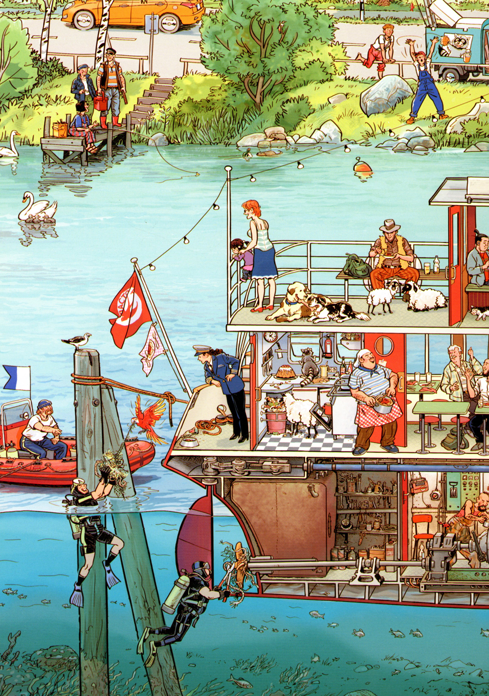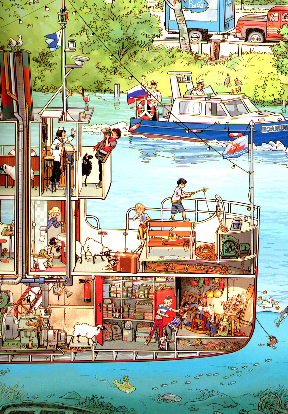 Рано утром теплоход «Ласточка» готовится отчалить от пристани. На борт один за другим поднимаются пассажиры, а капитан желает им счастливого плавания. Приглашаем всех читателей отправиться в увлекательное путешествие по реке вместе с героями книги! А ЧТО ВНУТРИ? - Безбилетный пассажир; - Первая остановка; - У паромной переправы; - Водолазы ремонтируют винт; - Авария на реке; - Мимо верфи; - Праздник в большом порту. Посмотри, чем заняты герои нашей книги, и найди их на каждом развороте.| Издательство | Мелик-Пашаев |