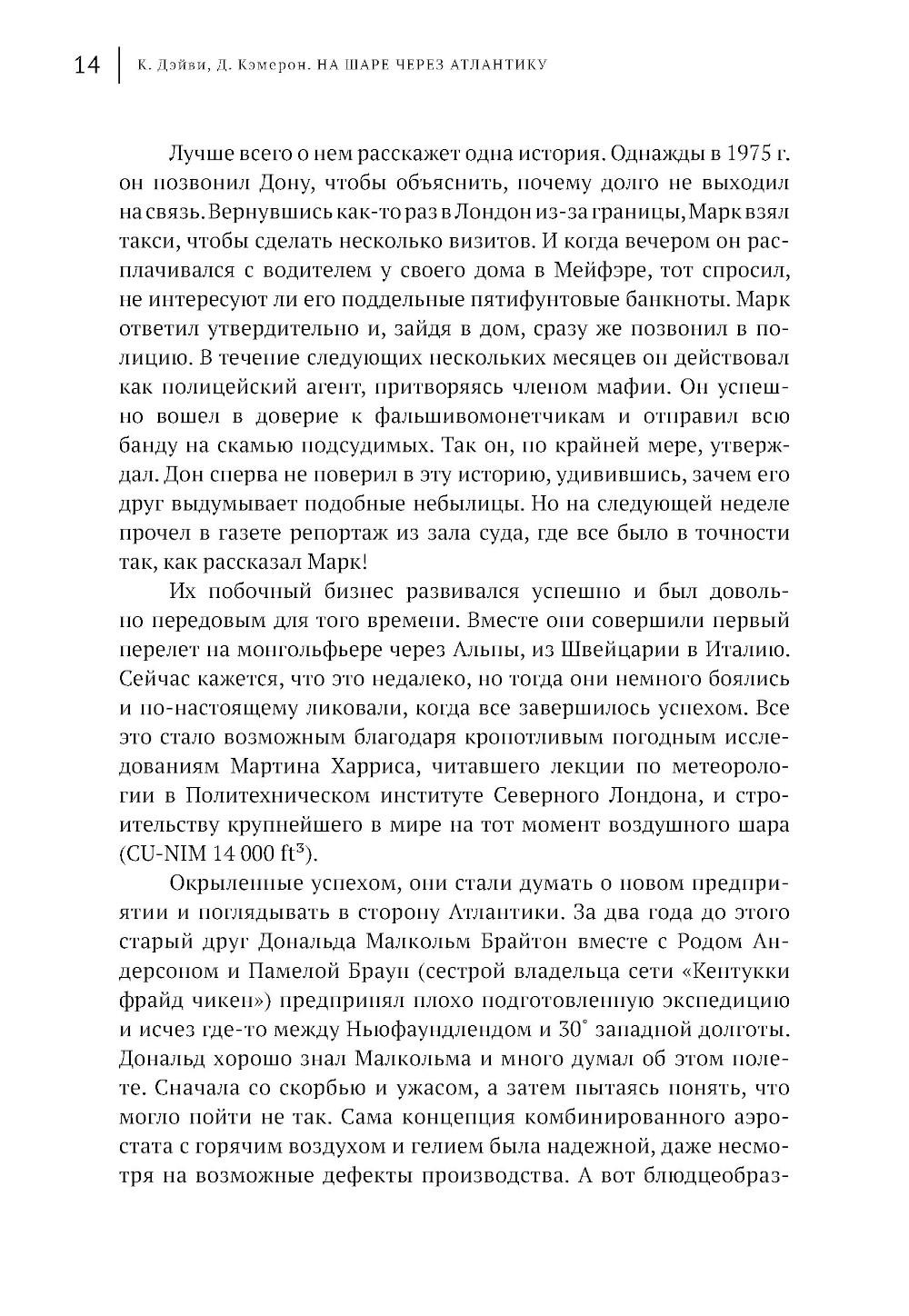 Никто не подошел к цели покорения Атлантики на воздушном шаре так близко, как двое англичан - 37-летний инженер Дональд Кэмерон и майор Кристофер Дэйви. В среду, 26 июля 1978 года, над канадским островом Ньюфаундленд в небо взмыл их ярко-желтый шар «Занусси» почти 50 метров в диаметре. Красная гондола четырех с половиной метров длиной была сделана в форме шлюпки и в случае аварийного приводнения могла спасти экипаж. Несмотря на то что шар вынужден был приземлиться, не дотянув до цели всего 100 километров, полет стал примером тщательной технической, организационной и психологической подготовки экспедиции. Книга впервые выходит на русском языке и предназначена широкому кругу читателей.| Издательство | Paulsen/Паулсен |