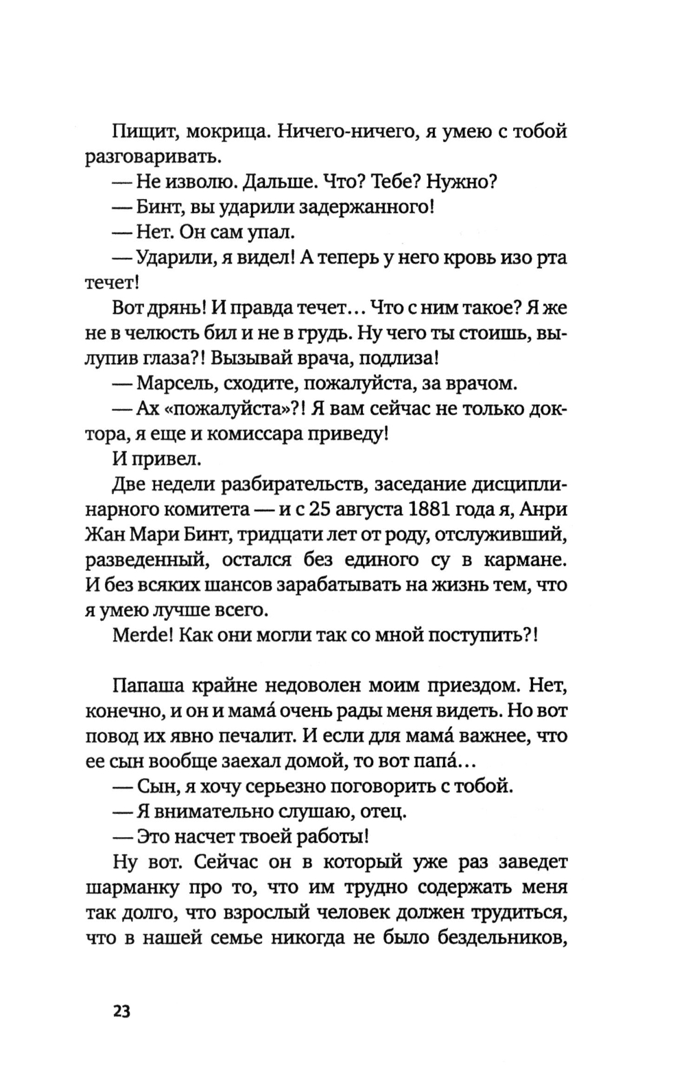 Новый роман Василия Зубакина основан на реальных событиях истории России и Франции. Главный герой - Анри Бинт, выходец из Эльзаса, «крестник» Дантеса (да, да, того самого) - успел за свою жизнь послужить России в качестве тайного агента заграничной резидентуры и при Его Величестве Александре III, и при Его Величестве Николае II, и даже (уже работая на ГПУ) когда к власти пришел «Его Величество пролетариат». Поэтому среди тех, с кем герою приходилось общаться, царские особы и царские чиновники, революционеры и провокаторы, террористы и двойные агенты, но и прекрасные дамы тоже. И неожиданная, совершенно непозволительная и безнадежная любовь приходит к герою романа при исполнении все тех же служебных обязанностей. Вместе с Анри Бинтом и его «подопечными» читатель перемещается из Парижа в Цюрих, с берегов Босфора в Ниццу, из Вены в Санкт-Петербург. А напоследок узнаёт некоторые подробности об авторстве знаменитых «Протоколов сионских мудрецов».