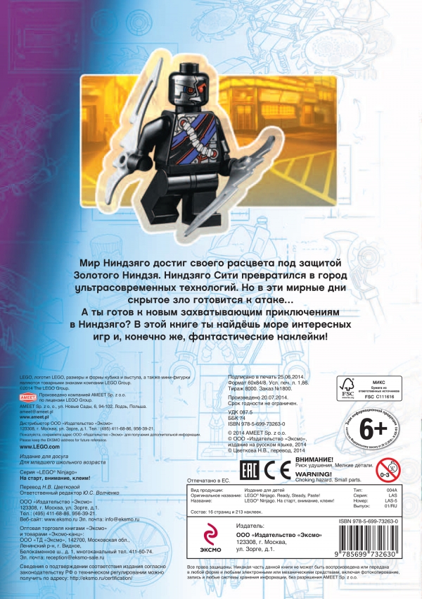 Приготовься к невероятным приключениям! В этой книге суперпопулярной серии LEGO Ninjago тебя ждут головоломки, игры, пазлы, множество заданий и классные наклейки для их выполнения!