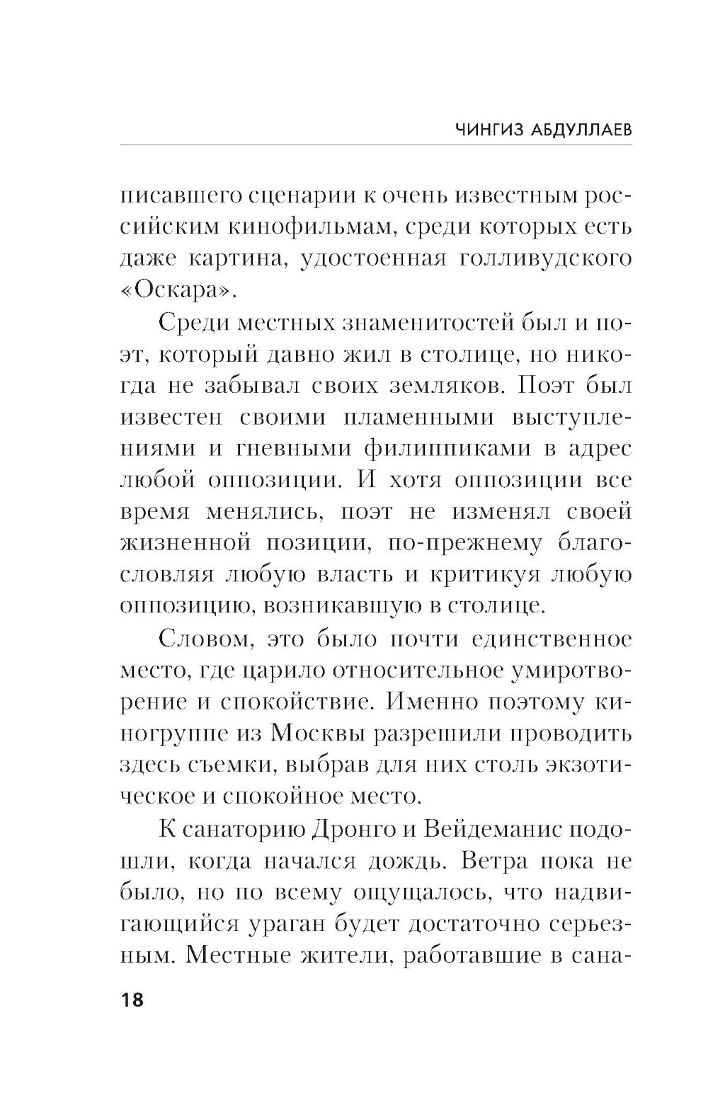 Уютная горная вилла, словно специально созданная для умиротворенного созерцания и творческого вдохновения... Богемная публика: красотки-актрисы, знаменитый режиссер, талантливый художник... Прогулки на свежем воздухе, изысканные яства, разговоры о высоком... Эксперт-аналитик Дронго с радостью принял приглашение своего друга-владельца виллы, давно мечтая оказаться подальше от темных историй, криминала, шума больших городов. Все начиналось прекрасно, но внезапно ветер переменился - небо затянули свинцовые тучи, ливень размыл дороги, гости оказались отрезаны от внешнего мира. Однако худшее, как оказалось, было еще впереди: зайдя в комнату одной из актрис, Дронго обнаружил ее мертвой. А через минуту туда же вошла подруга покойной - теперь эксперт-аналитик - главный подозреваемый...| Издательство | Эксмо |