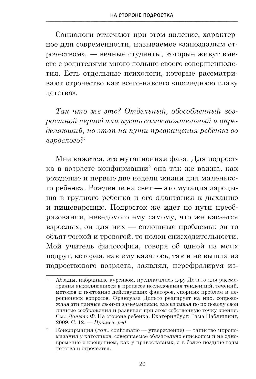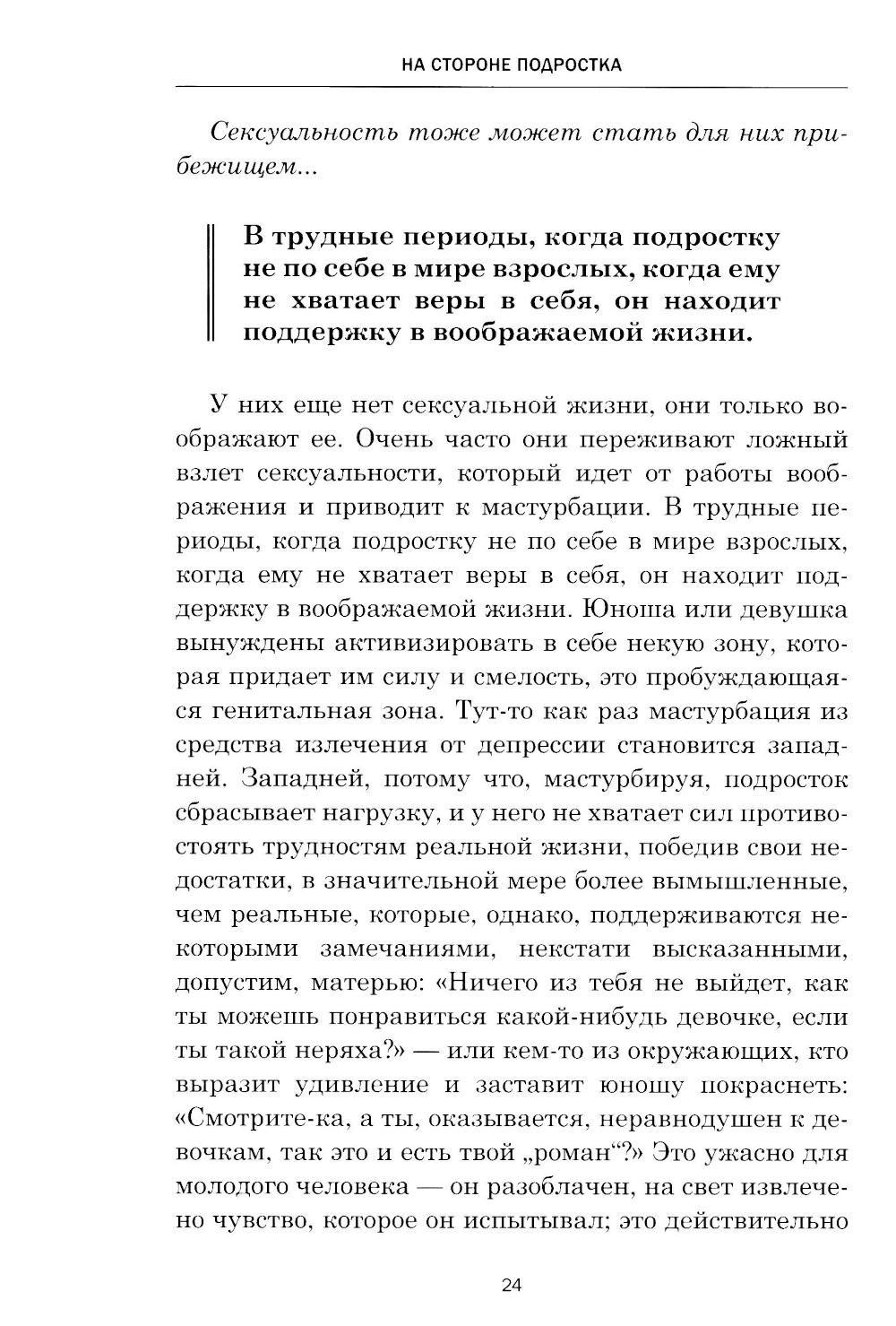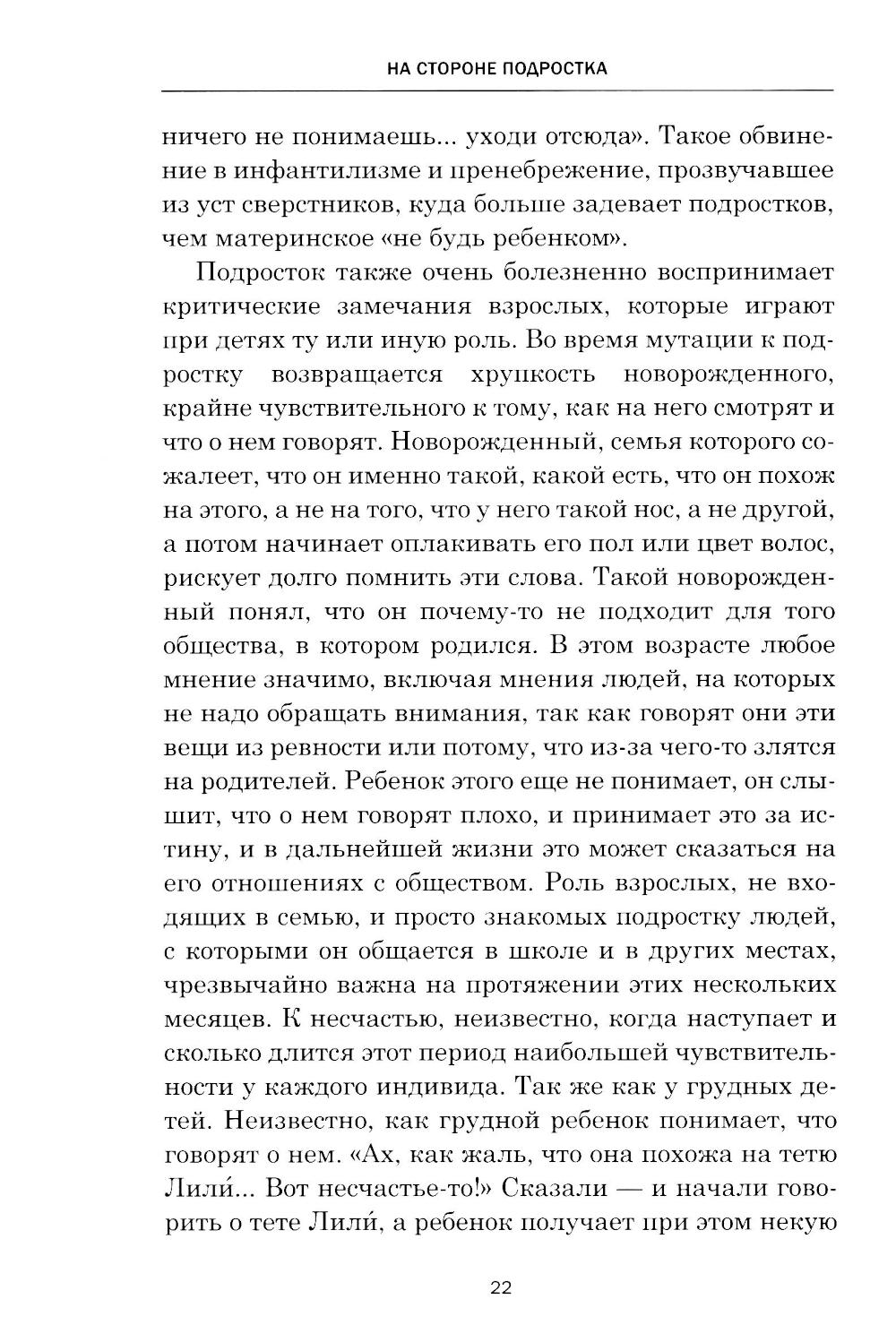 В книге «На стороне подростка» Франсуаза Дольто поднимает темы сексуальности, одиночества, школьных трудностей, наркотиков, самоубийств, взаимоотношений родителей и подростков, побегов из дома и др. Автор размышляет о том, каковы социальные предпосылки подростковых проблем, предоставляя читателю возможность посмотреть на ситуацию глазами подростка и попытаться встать на его сторону. Актуальность рассматриваемых тем делает книгу интересной родителям, педагогам, психологам, семейным психотерапевтам, социальным работникам и др.| Издательство | Рама Паблишинг |