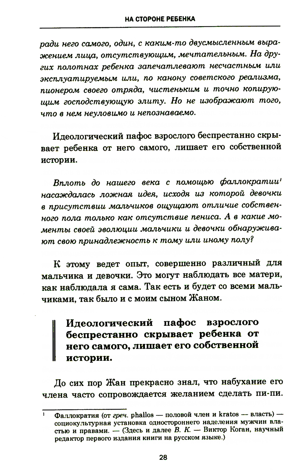 Глубокое всестороннее исследование детства и личности ребенка, предпринятое Франсуазой Дольто в произведении «На стороне ребенка», принесло автору всемирную известность. Для Ф. Дольто существенно все: права ребенка, реформа образования, аутизм, влияние телевидения и компьютера, детская сексуальность, детские комплексы, раннее развитие и т. д. Она ведет читателя за собой, лишая его привычных стереотипов, уплощенного восприятия детства, позволяя посредством тонкого, целостного анализа увидеть многомерность мира ребенка, его сложность и неоднозначность. За методом Ф. Дольто-психоаналитика стоит подход философа, психолога, социолога - личности, чутко улавливающей происходящие в мире изменения и их отражение на системах воспитания и образования детей. Издание адресовано каждому взрослому, стремящемуся расширить границы познания в отношении детства и научиться понимать и любить детей.| Издательство | Рама Паблишинг |