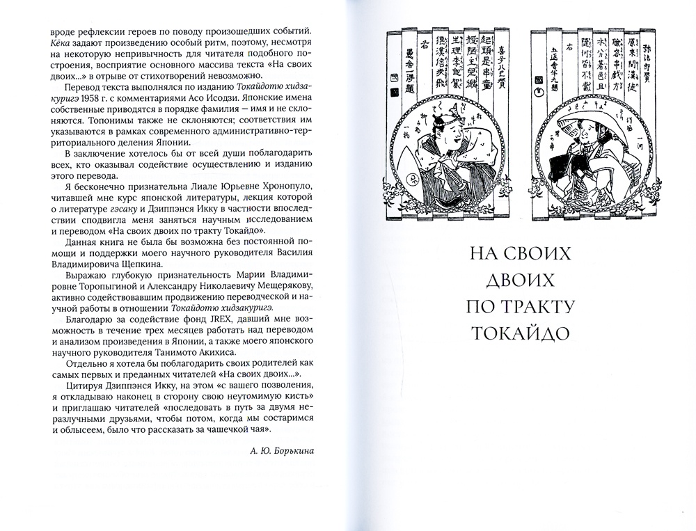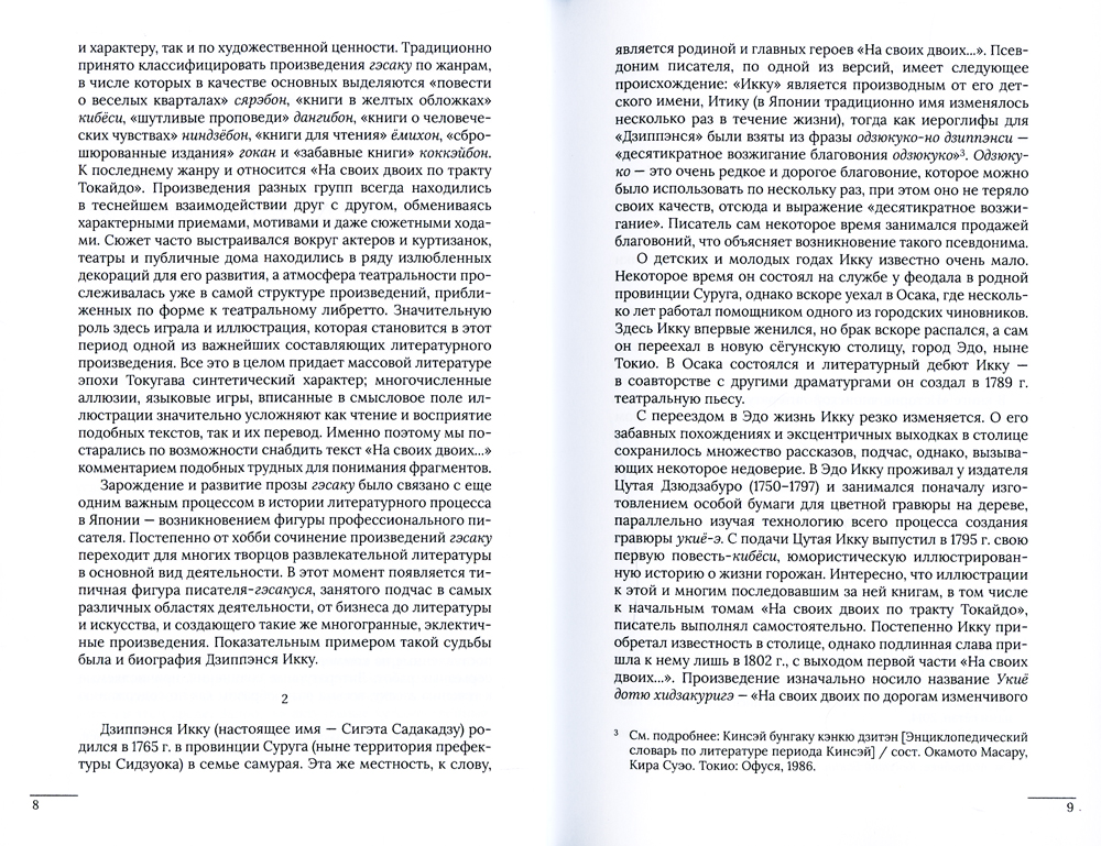 Литературное путешествие двух беззаботных приятелей-гуляк, Ядзиробэй и Китахати, по провинциям Японии началось в далеком 1802 г. На своем пути они вкушают невероятные наслаждения и преодолевают бесчисленные невзгоды, наблюдают изумительные пейзажи и попадают в забавные переделки, а главное, встречают бесконечную череду «блуждающих по дорогам Японии» - самураев, простолюдинов, паломников, возниц, торговцев, дев веселья, мошенников всех мастей и многих других, благодаря которым герои, а вслед за ними и читатель, знакомятся с многообразием жизни на фоне широкой панорамы страны. Создатель Ядзи и Кита, японский писатель Дзиппэнся Икку (1765-1831), был одним из самых известных литераторов своего времени, а главный труд его жизни «На своих двоих по тракту Токайдо» стал настоящим бестселлером. Книга снабжена подробными комментариями, указателями и богато иллюстрирована самим автором - Дзиппэнся Икку. На русский язык это произведение никогда ранее не переводилось.