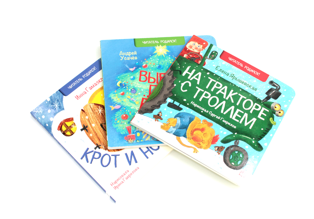 В серии «Читатель родился!» собраны самые лучшие, самые свежие, самые звонкие стихи для малышей и потешки современных авторов. С ними можно проснуться, потянуться, погладить спинку и животик, сделать пальчиковую гимнастику, поиграть, подкрепиться, искупаться и, конечно же, сладко уснуть. Комплект состоит из трех книг: «На тракторе с троллем», «Выбрал папа елочку» и «Крот и Новый год».| Издательство | КД Анастасии Орловой |