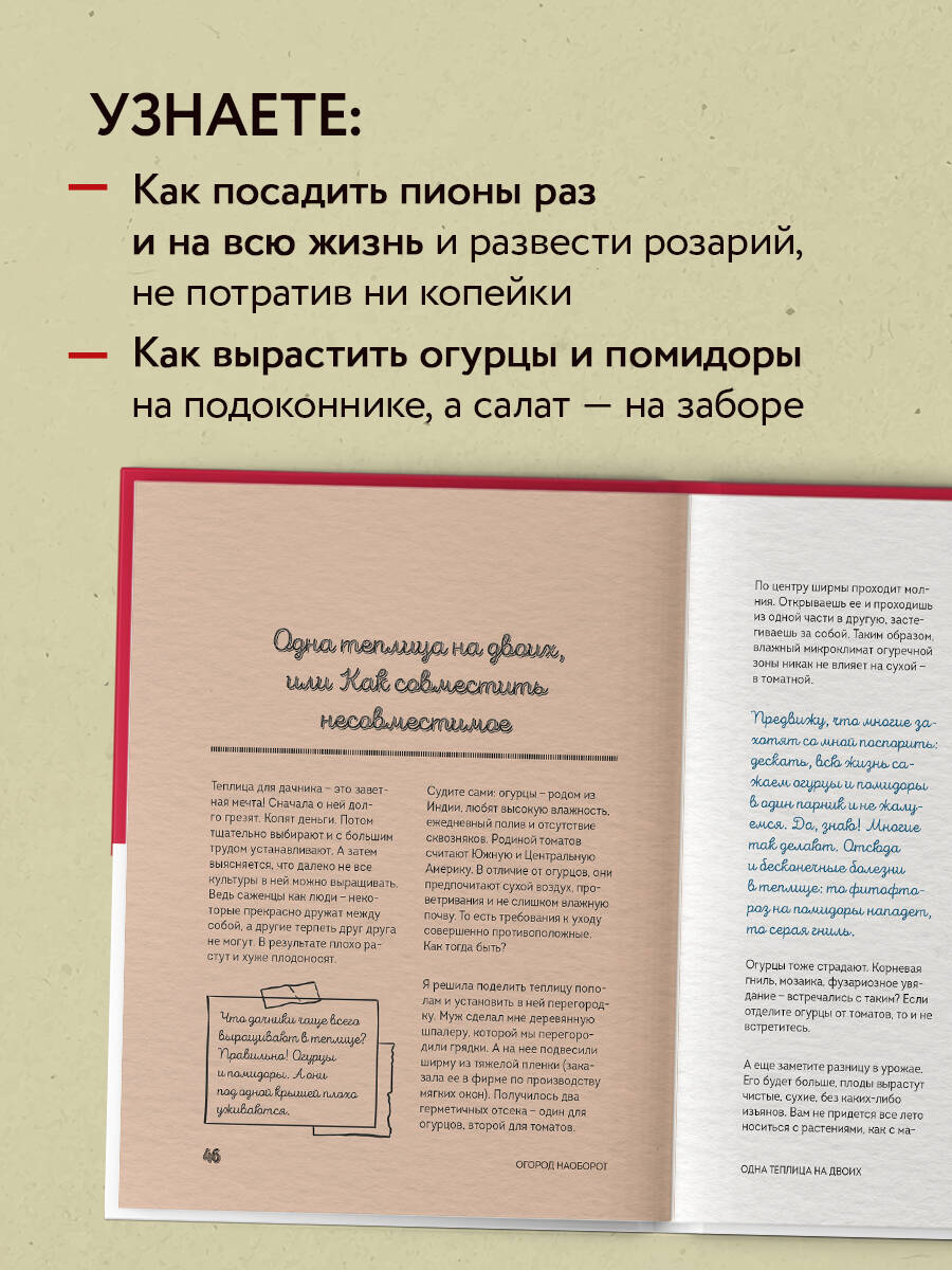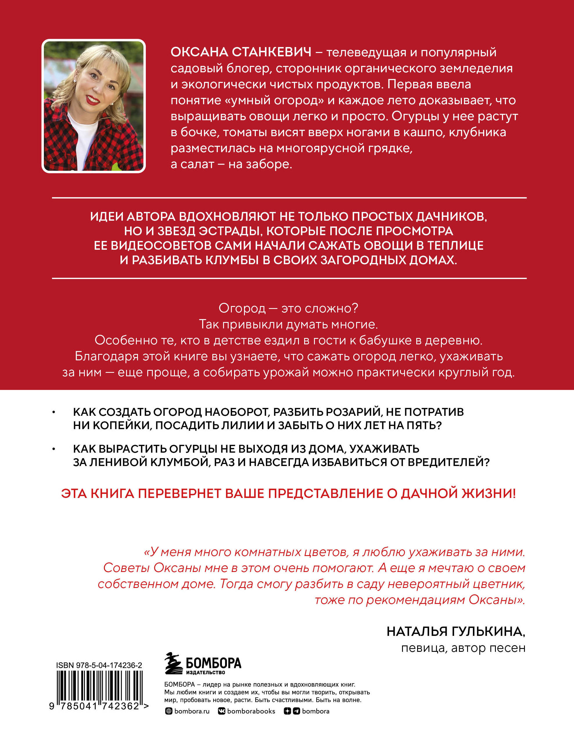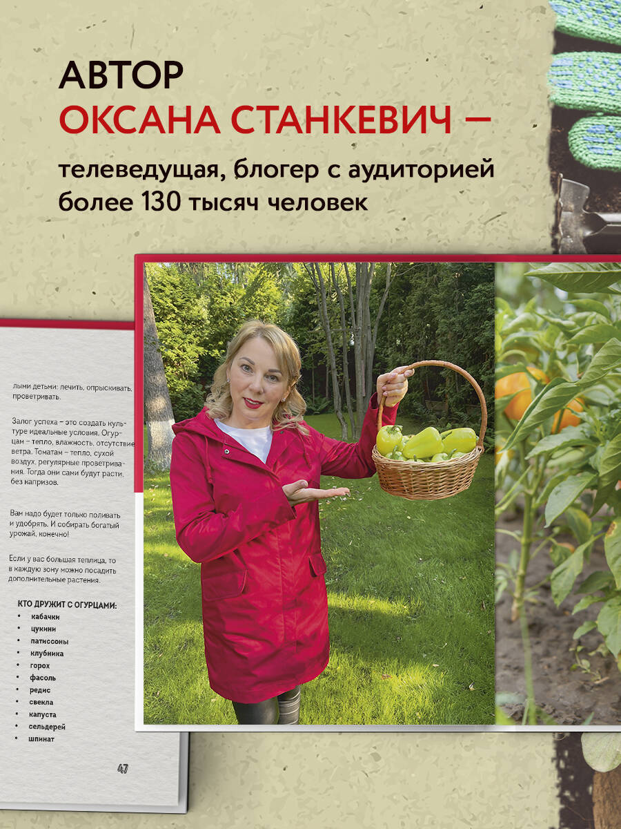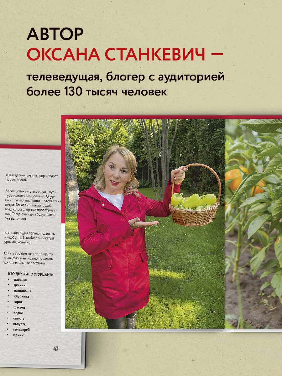 Как выглядит идеальный огород? Такой, за которым не надо сутки напролет ухаживать, гнуть спину, бесконечно полоть и поливать. Ведь на даче в первую очередь надо отдыхать! И собирать богатый урожай! Эта книга перевернет ваше представление о дачной жизни. Вы узнаете, что сажать огород легко, ухаживать за ним - еще проще, а собирать урожай можно практически круглый год. Да! Не сезон, а весь календарный год. Оксана Станкевич, телеведущая, блогер с аудиторией свыше 100 000 человек, знает все дачные секреты! В этой книге вы узнаете: • как развести розарий, не потратив ни копейки; • как посадить пионы один раз и на всю жизнь; • как вырастить огурцы и томаты на подоконнике, не выходя из дома; • как прогнать вредителей при помощи бытовых средств раз и навсегда. А еще автор поделится своими методами выращивания огурцов в бочке и томатов вниз головой! Создайте огород своей мечты без больших временных и финансовых затрат.