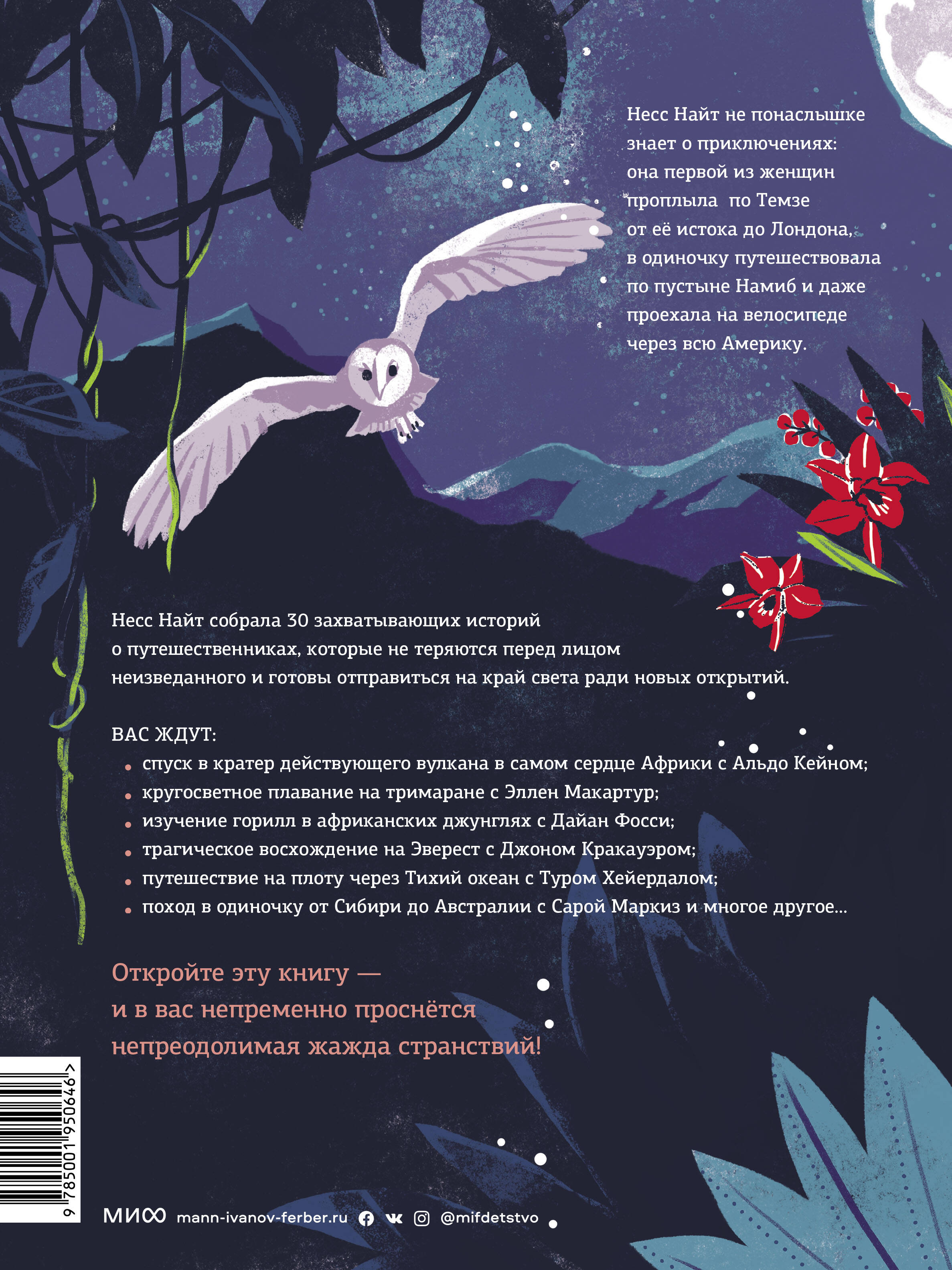 Сборник из 30 рассказов о путешественниках прошлого и настоящего. Автор этой книги, Несс Найт, не понаслышке знает о приключениях: она сплавлялась по рекам, жила в пустыне и заповеднике и даже проехала на велосипеде через всю Америку. Для всех, кого тоже манит дух странствий, Несс собрала 30 захватывающих историй путешественников из прошлого и современности. От настоящих легенд - таких, как Тур Хейердал или Дайан Фосси - до менее известных, но столь же удивительных первопроходцев и смельчаков. Вы сможете спуститься в жерло вулкана вместе с Альдо Кейном, подняться на Эверест с Джоном Кракауэром, вместе с Эллен Макартур отправиться на яхте в кругосветное путешествие. Словом, пройти через огонь и воду -- а еще зыбучие пески, джунгли, льды Антарктиды и многое другое! Каждая история расскажет о незаурядных, храбрых и любознательных людях, которые не теряются перед лицом неизведанного и готовы отправиться на край света ради новых открытий. Что бы вы ни выбрали: изучение горилл в джунглях вместе с Дайан Фосси или спуск в действующий вулкан с Альдо Кейном - в вас непременно проснётся неодолимая жажда странствий! Для кого эта книга: Для детей 7-12 лет. Для совместного чтения с детьми 5-6 лет, которые интересуются темой путешествий и наблюдений за дикой природой.| Издательство | МАНН, ИВАНОВ И ФЕРБЕР ООО |