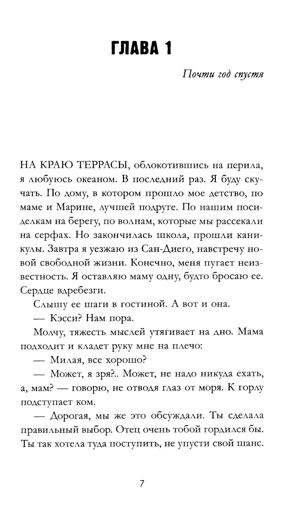 Кэсси Уилт оставила прошлое позади. Это ее первый год в Стэнфорде, и она надеется заложить прочный фундамент для новой жизни. Учеба, друзья, знакомства... Одна случайная встреча, предназначенная судьбой. Хайден Каланн - плохой парень. Он горяч, обожает скорость и темную одежду, его тело покрыто татуировками. Он - все, что так ненавидит Кэсси, он - все, что она себе запрещает. Хайден уверен, что Кэсси ему вполне по зубам, управлять девушкой легче, чем мотоциклом на полной скорости. Кэсси уверена, что в играх с высокими ставками нужно сохранять холодную голову. Между ними бушует океан любви-ненависти. Как не утонуть среди высоких волн?| Издательство | Клевер-Медиа-Групп |