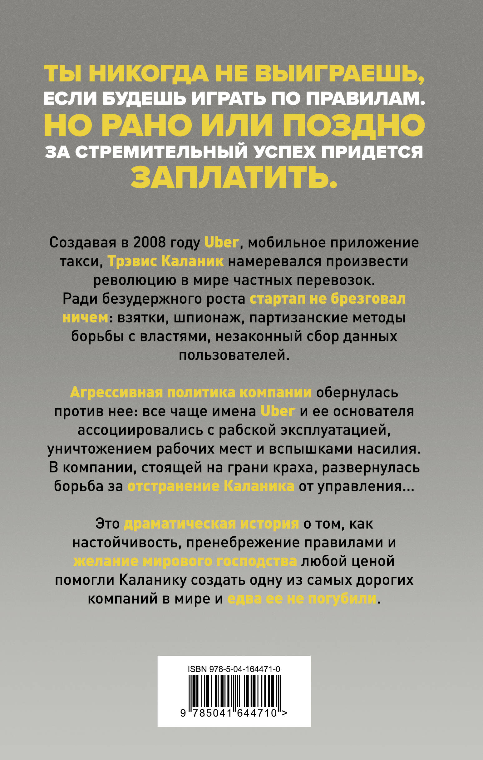 Мировая кинопремьера! Главная книга о компании UBER и Трэвисе Каланике, ставшая основой одноименного телесериала с УМОЙ ТУРМАН и ДЖОЗЕФОМ ГОРДОН-ЛЕВИТТОМ. История гиганта IT-индустрии, ставшего жертвой безмерных амбиций своего основателя. ЛУЧШАЯ КНИГА 2019 ГОДА НА AMAZON! В 2008 году Каланик вместе с молодым бизнесменом Гарретом Кемпом создал Uber - мобильное приложение по заказу такси. Стартап стремительно завоевывал одну страну за другой, не останавливаясь ни перед чем. Взятки, шпионаж, партизанские методы борьбы с властями, незаконный сбор данных пользователей. Но агрессивная политика компании имела свои последствия: все чаще имя Uber ассоциировалось с рабской эксплуатацией водителей, сотнями тысяч уничтоженных рабочих мест, а также вспышками насилия по всему миру. В компании, стоящей на грани краха, развернулась борьба за отстранение создателя Uber от управления... «На взводе. Битва за Uber» - это инсайдерская история гиганта IT-индустрии, в которой стремление менять мир и энтузиазм были не в силах перевесить алчность, личные амбиции и жажду мирового господства любой ценой. Это драматическая история о том, как настойчивость и пренебрежение правилами помогли Каланику создать одну из самых дорогих компаний в мире и едва ее не погубили. «Мастерский образец журналистских расследований, книга Майка Айзека - это безумное путешествие, которое вы не захотите пропустить». - Amazon Book Review «История компании Uber, главного "единорога" Долины - это притча о власти и о том, на что готовы пойти основатели стартапов, чтобы ее захватить и удержать. Увлекательная книга, которая изобилует шокирующими и возмутительными откровениями». - Джон Каррейру, автор книги «Дурная кровь» «В книге прослеживается путь Каланика от неудачливого основателя стартапа до объекта зависти, а затем - воплощения технологического зла. В тщательном расследовании Айзека всплывают невероятные эпизоды из жизни компании: руководитель офиса в Таиланде, засунувший лицо сотрудницы в кучу кокаина; Каланик, корчащийся на полу конференц-зала в отеле Франциско после публикации Bloomberg, или видео, на котором генеральный директор ругает водителя…» - Wired «Трэвис Каланик изменил целую индустрию, заработал миллиарды долларов и превратил свою компанию в символ, - и сделал это, уничтожив всех, кто встал у него на пути. Захватывающее чтение о корпоративной мачистской культуре, из-за которой все пошло наперекосяк». - Vanity Fair| Издательство | Эксмо |