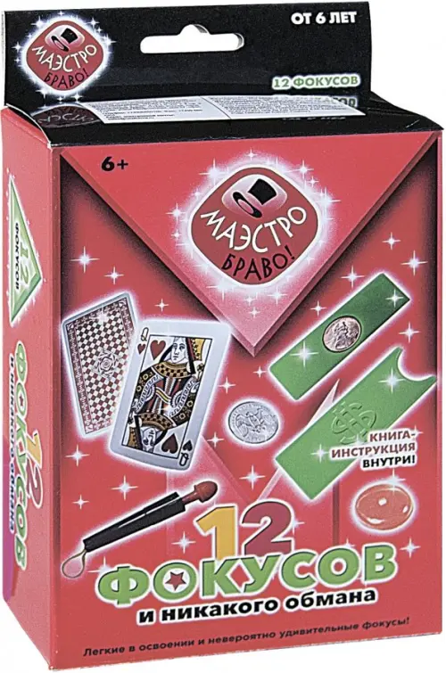 В наборе: книга, пенал для монет, монетка, пробка-невидимка, чудо-крючок с трубочкой, пробочкой и резинкой, 2 волшебные карты.