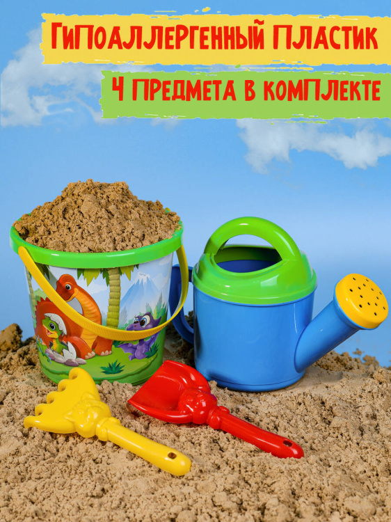 НАБОР №79 (ВЕДРО №8 (0.85л.) ДИНО+ лейка+ лопатка 13 см + грабли 13 см) (Арт. И-2185)