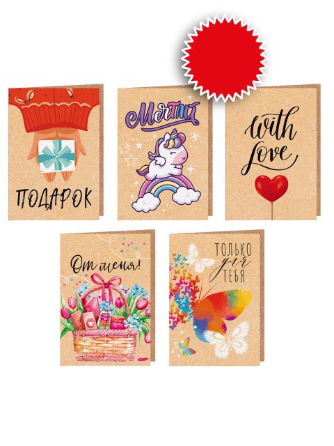 Набор бирок, открыток для подарков "Мечтай!" (5 шт.)