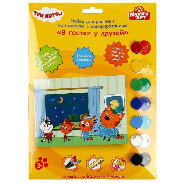 Аннотация: Набор д/дет тв-ва Три Кота холст на карт. для росп. по ном. с дек.17*23 MultiArt в кор.50шт