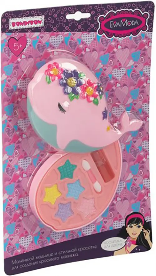 В набор входят: косметичка-кит, тени для век 5 оттенков (3,5 гр), помада (1,3 гр), аппликатор.