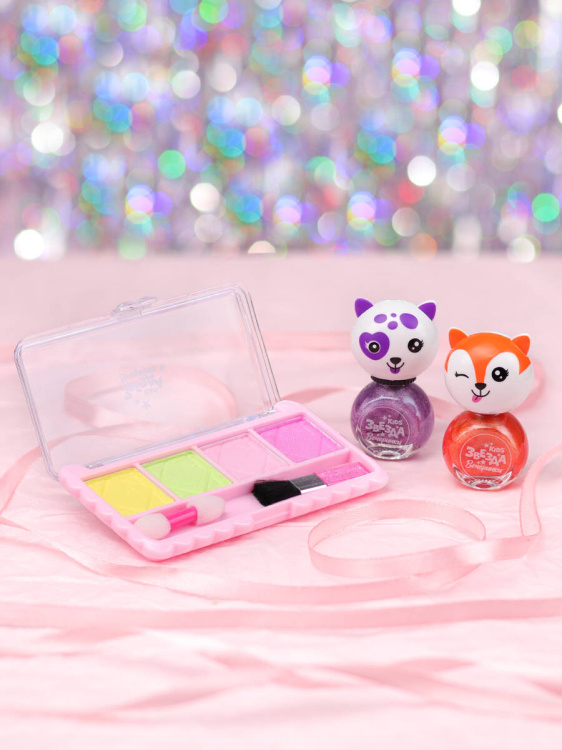 Набор детской косметики "Кошечка" (тени, лак для ногтей, апплик, кисть, цвет микс) ( Арт. КС-5223)