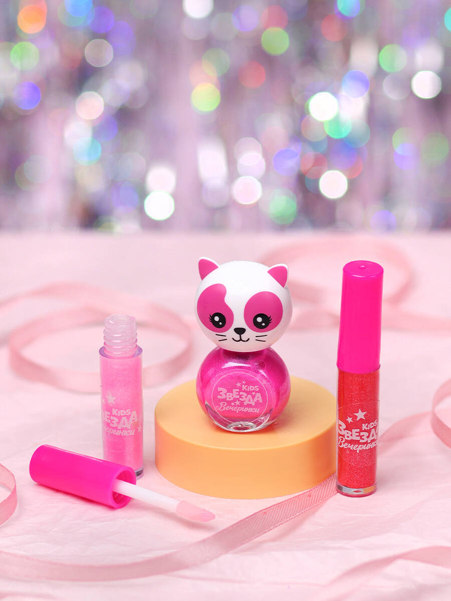 Набор детской косметики "Кошечка 11" (лак д/ногтей 1шт, блеск д/губ 2шт, цвет микс) ( Арт. КС-5202)